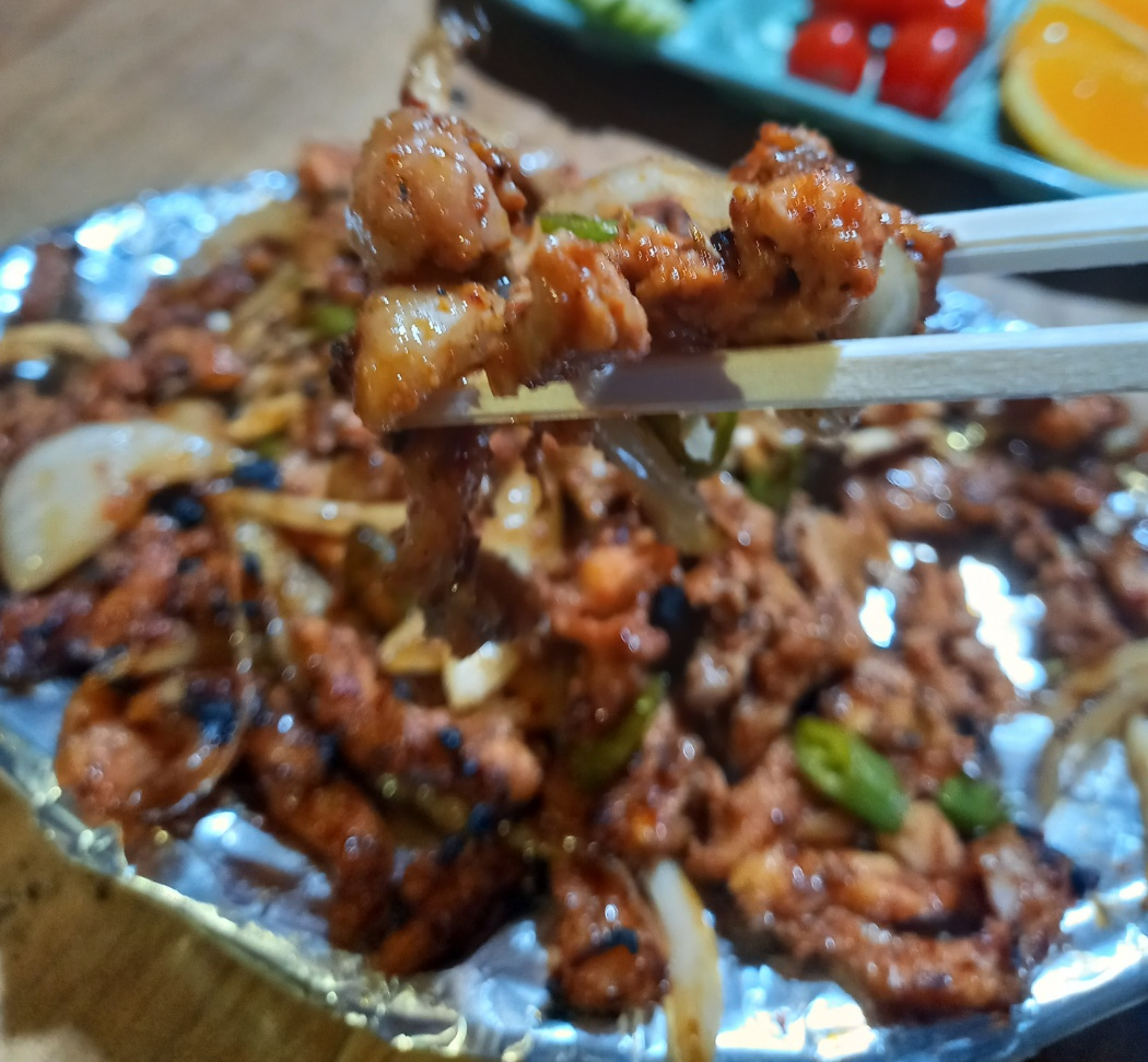 닭갈비의잡내가 하나도 나지않고 불맛이 가득하여 정말 담백합니다.