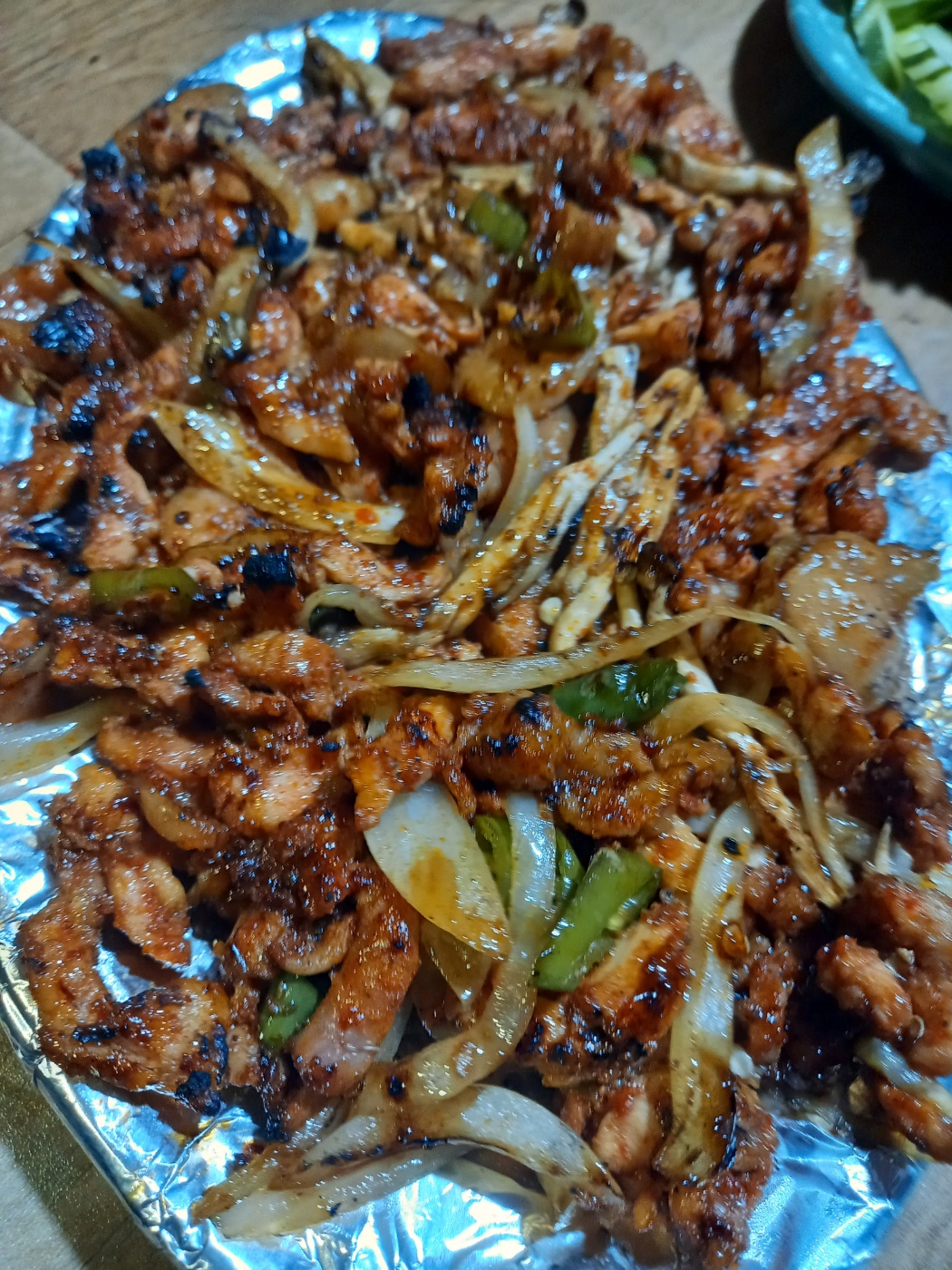 그렇게 밑반찬을 먹고있다보니 연탄석쇠에 맛있게 구워진 닭갈비가 나왔습니다.