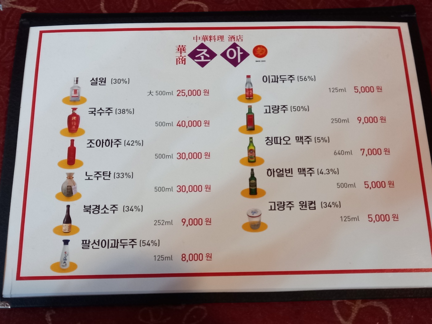 중국식 술집이다보니 다양한 중국의 증류주들을 판매하고 있었고,