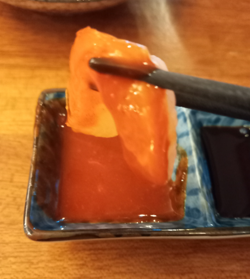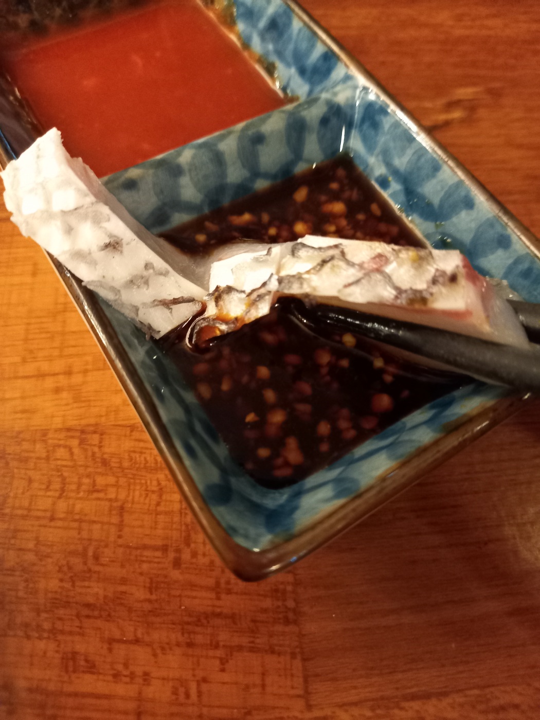 그리고 겉에만 살짝 익힌 참돔을 와사비를 풀은 간장소스에 찍어서 먹어보았습니다.