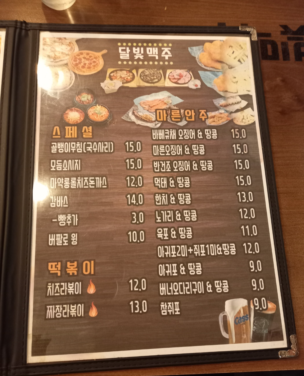 이날 저는 친구들과 3차로 달빛맥주에 방문하여서 배가 정말로 안고파서 세명에서 먹을 메뉴를 사장님께 물어보았습니다.