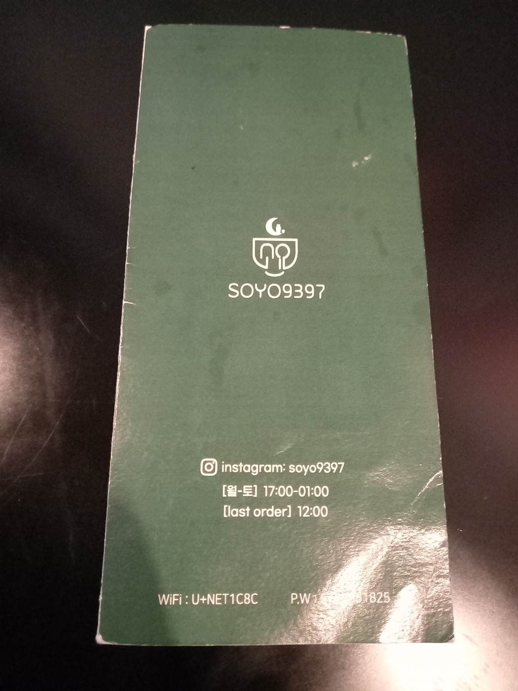테이블에 앉으니 소요9397 메뉴판이 있습니다.