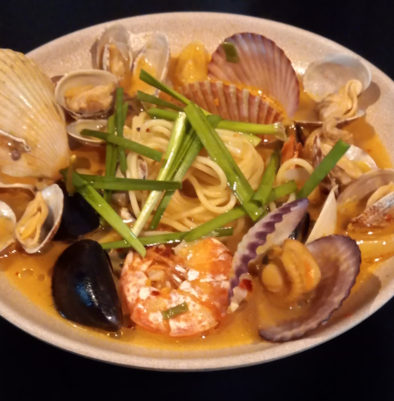 가리비, 백합, 홍합, 새우가 들어간 파스타인데