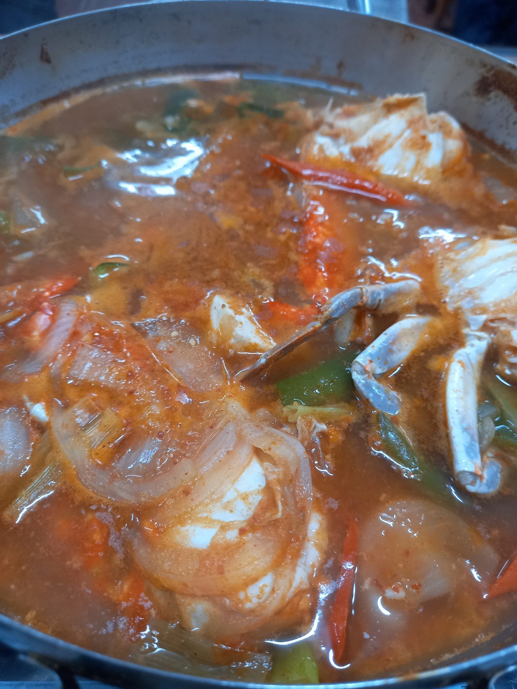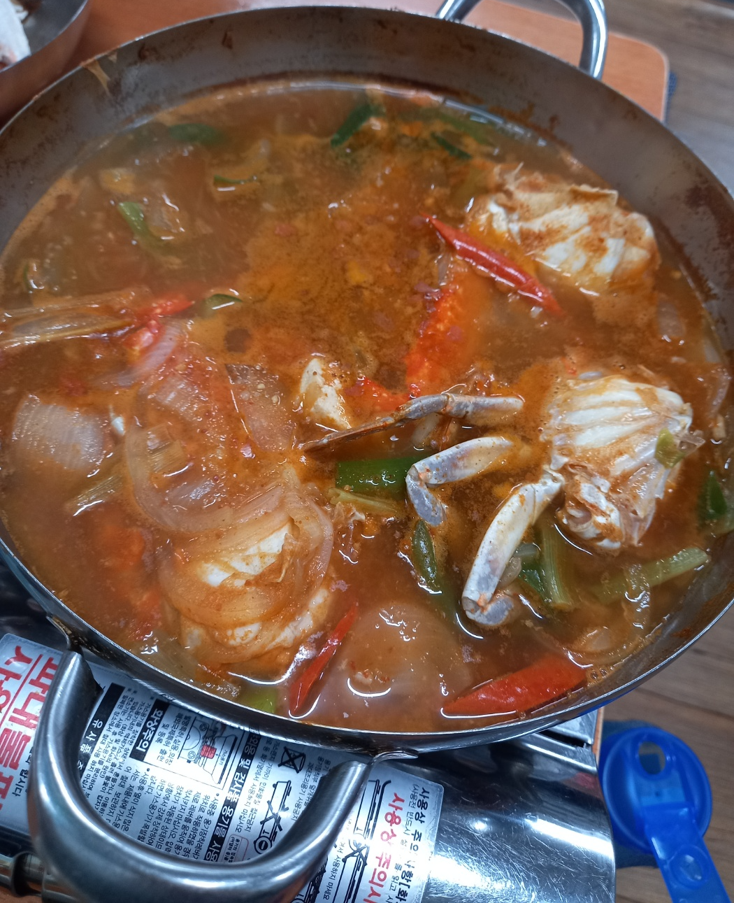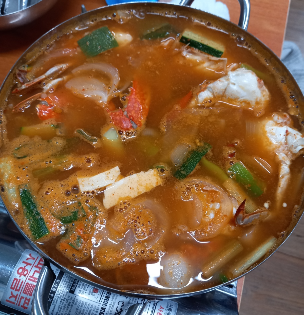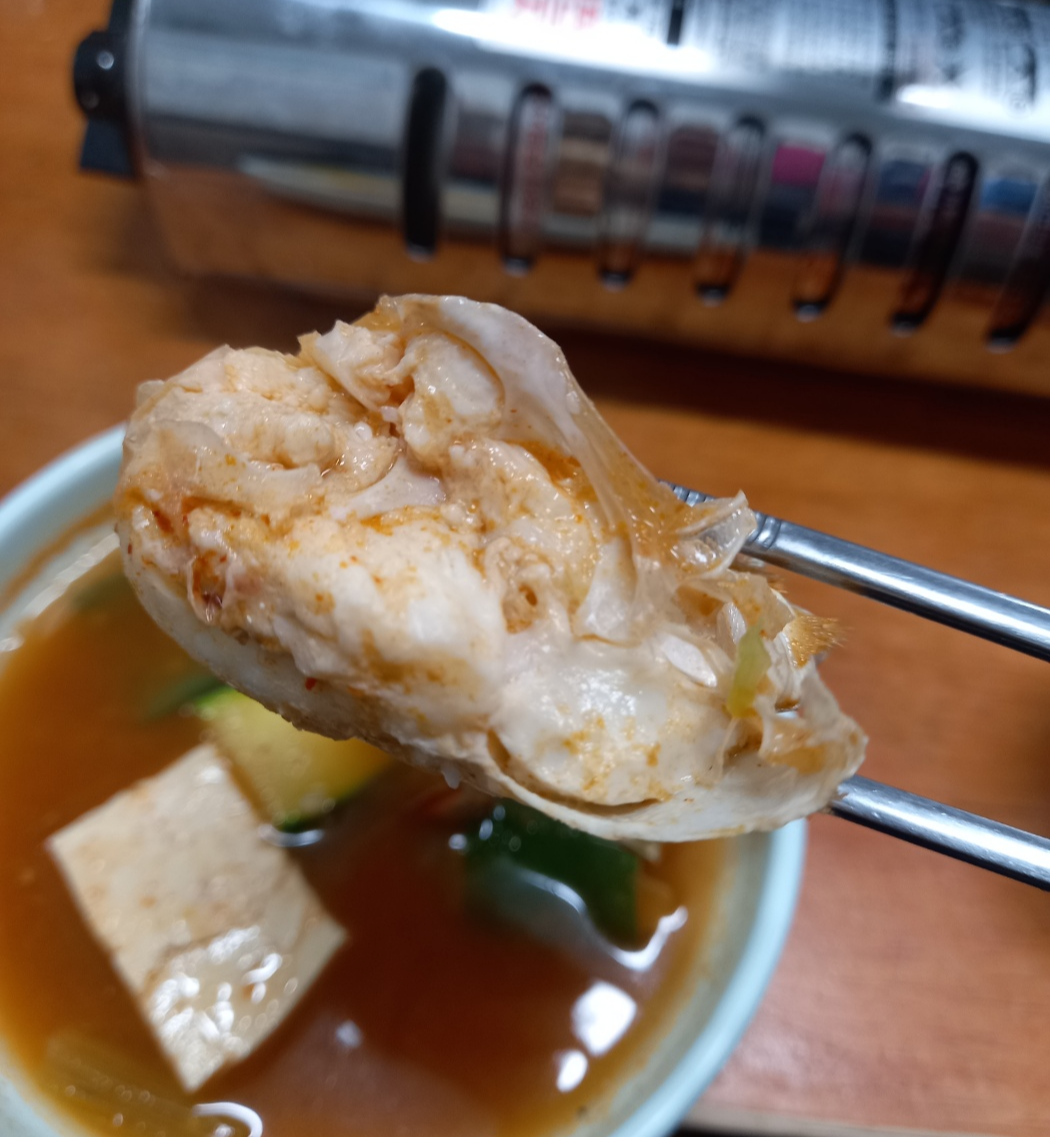 꽃게탕 소자에 꽃게가 3마리가 들어있어 친구 두명과 한마리씩 나눠먹었습니다.