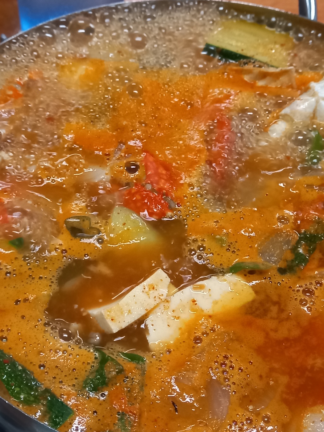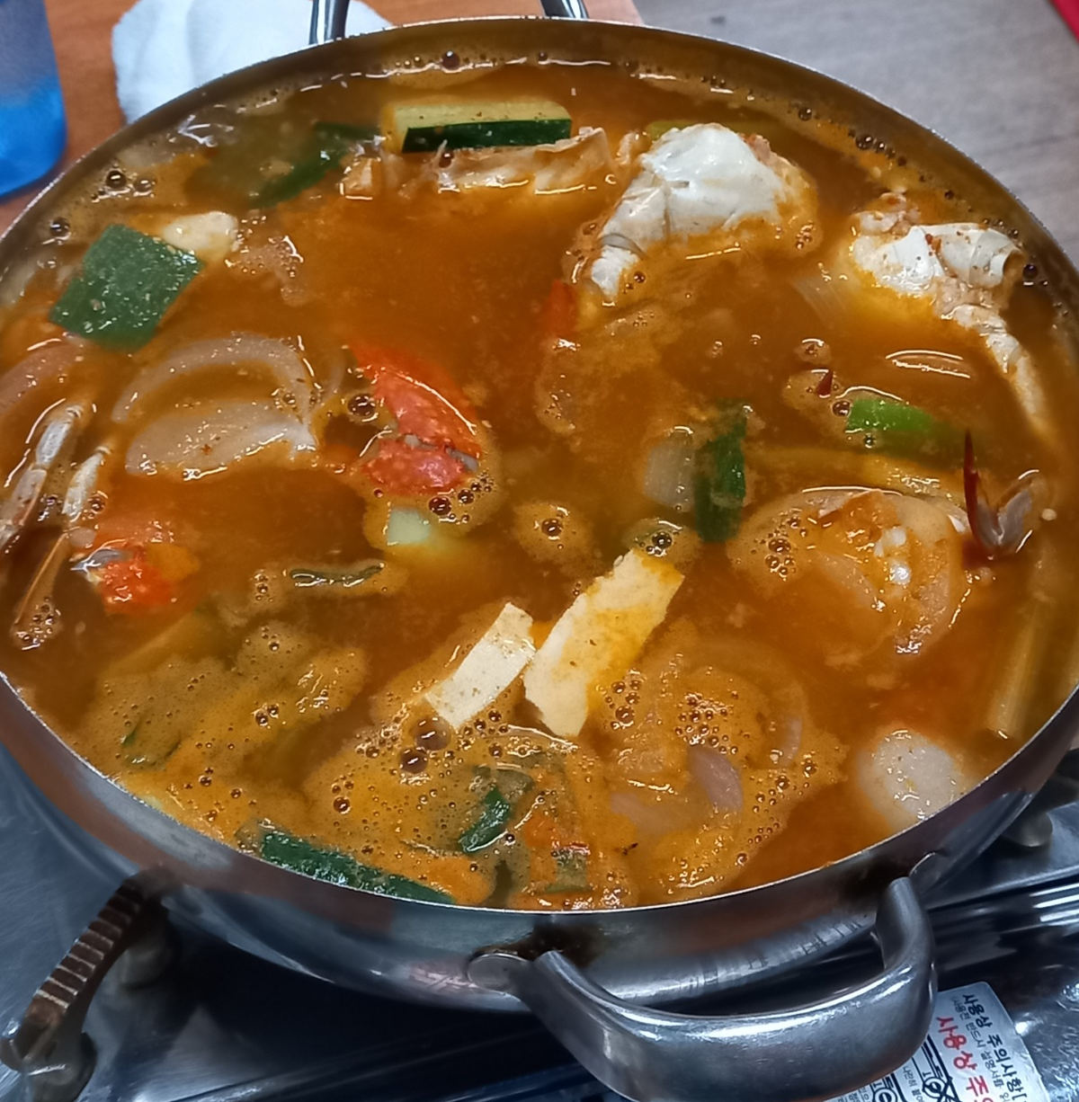 시원한맛을 내주는 꽃게와 다양한 채소 두부가 들어있는데 구수한 맛이 일품입니다.