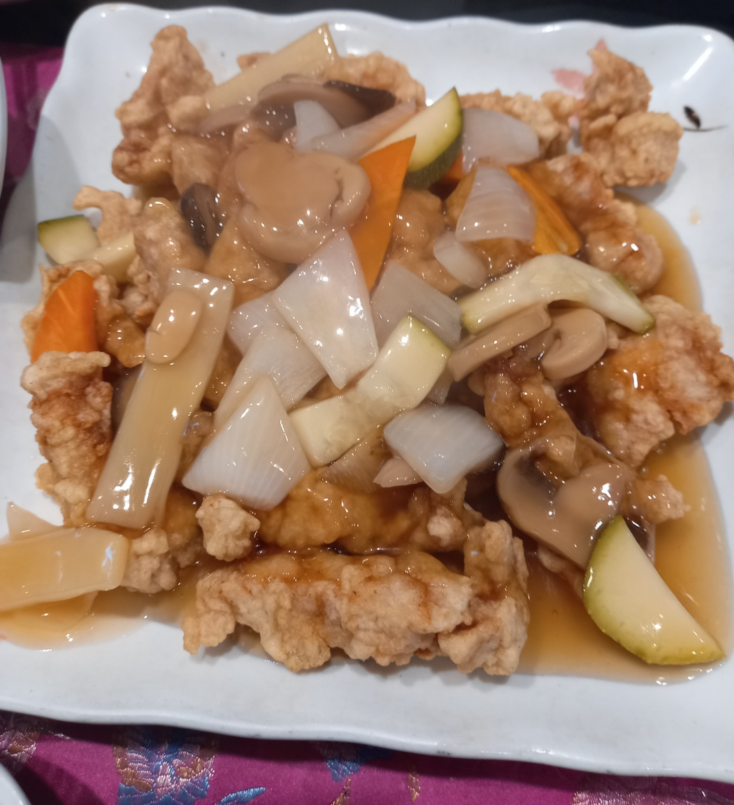 탕수육에 함께 나오는 버섯, 죽순, 호박, 당근과 먹으면