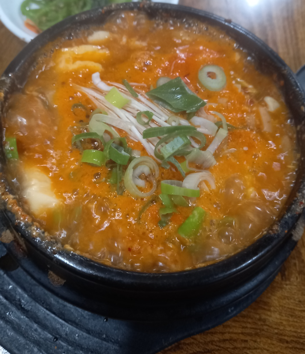얼큰하면서 담백한 순두부찌개의 맛이 매우 맛있습니다.