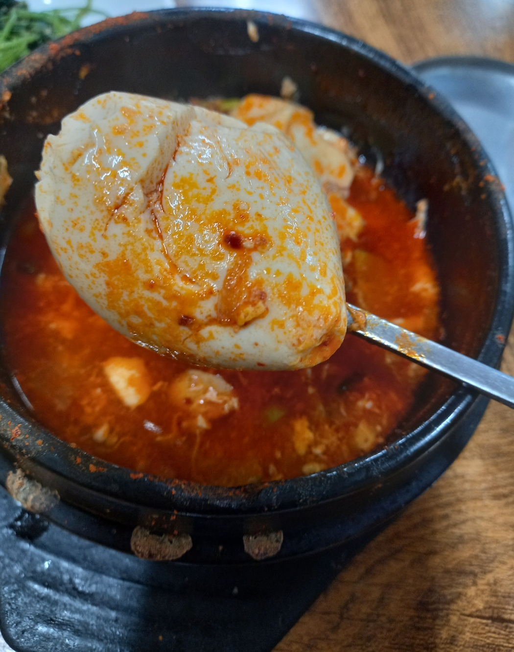 부침개를 먹고있다보니 주문한 순두부찌개가 나왔습니다.
