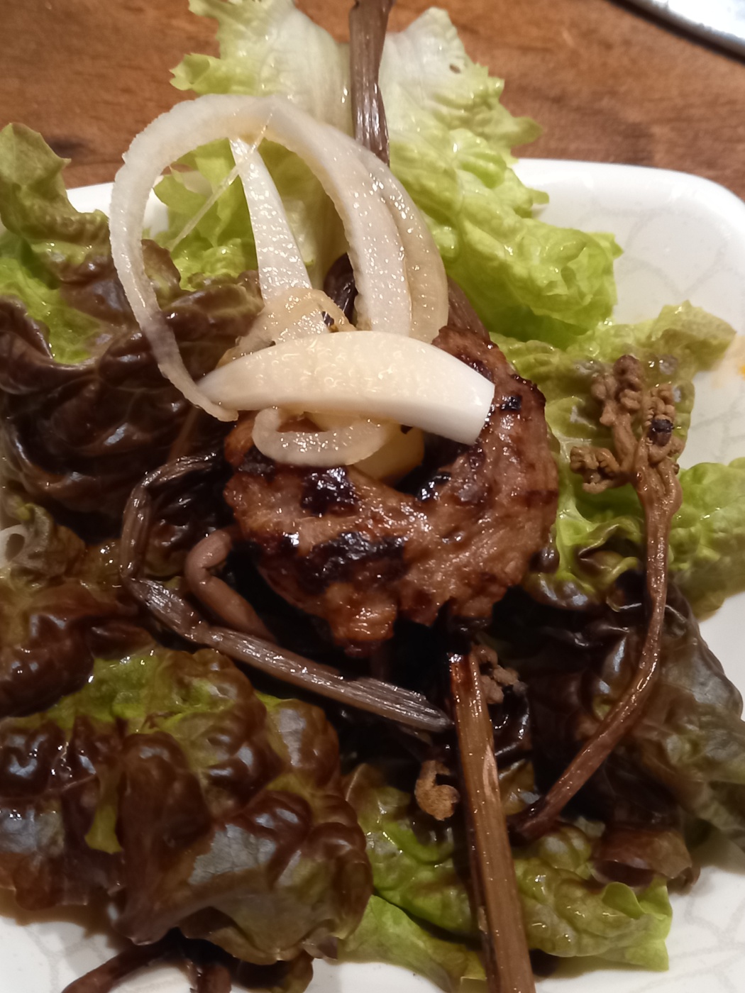 부드러운 뒷고기의 식감과 아삭한식감의 채소들을 함께 먹으니 매우 맛있었습니다.