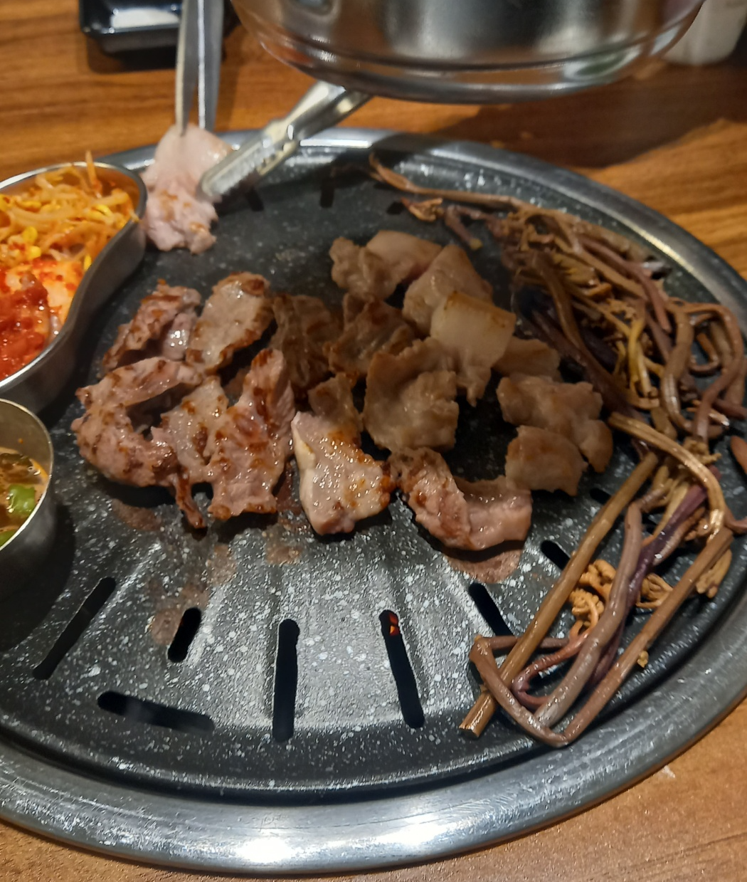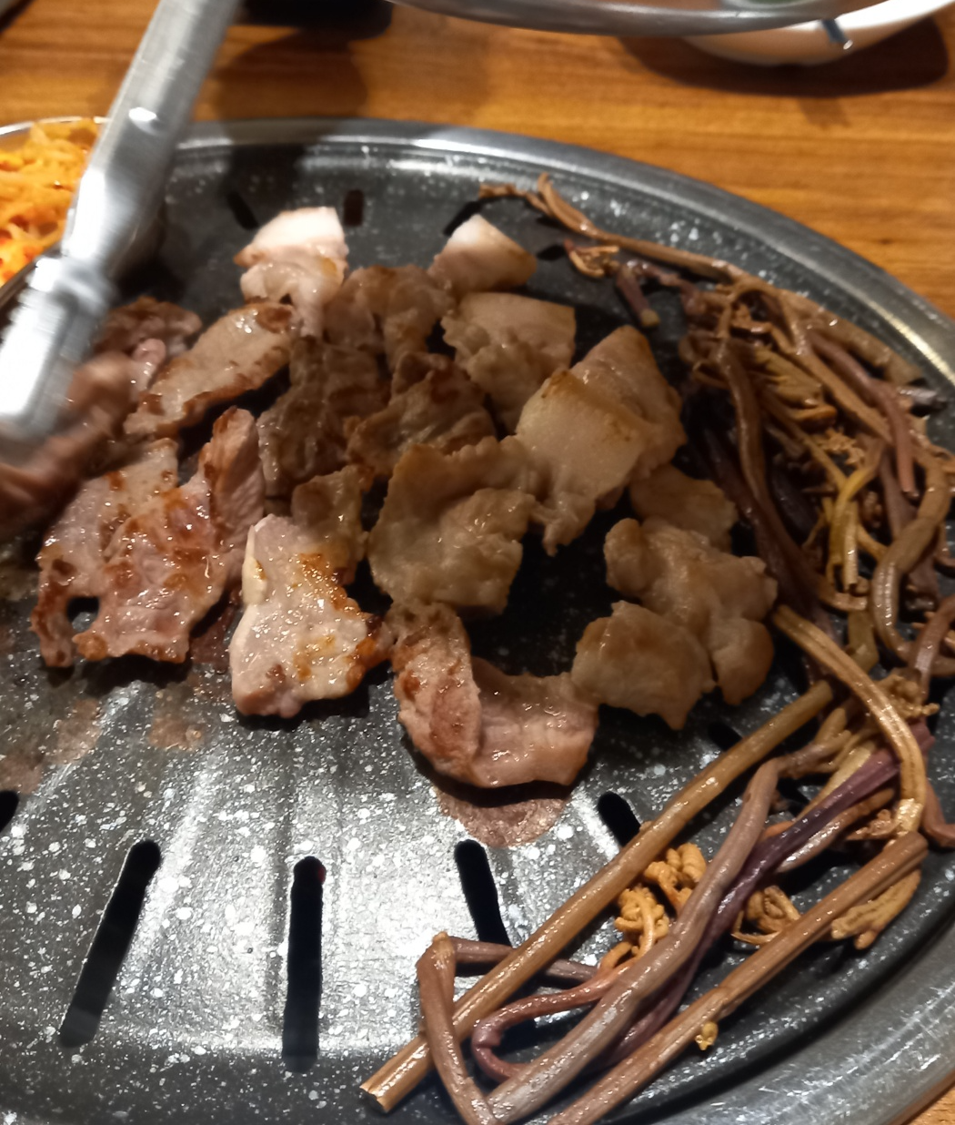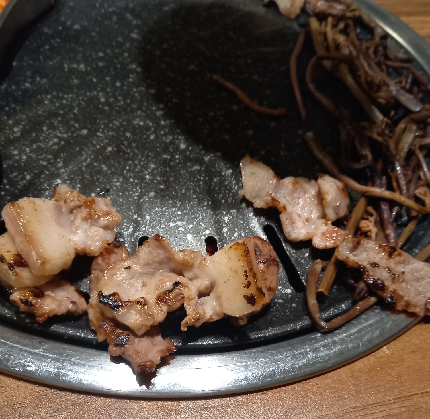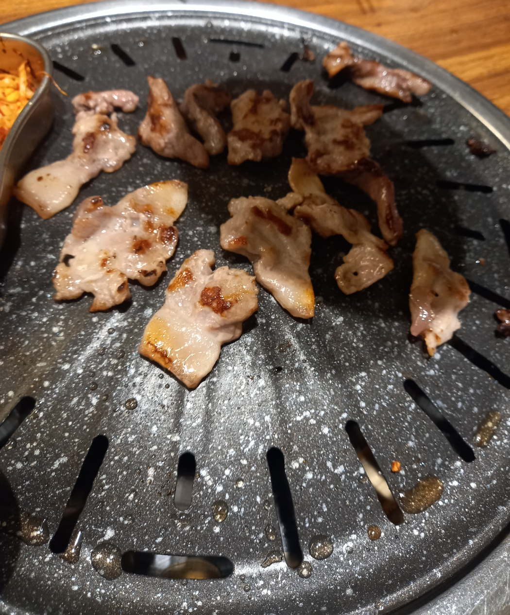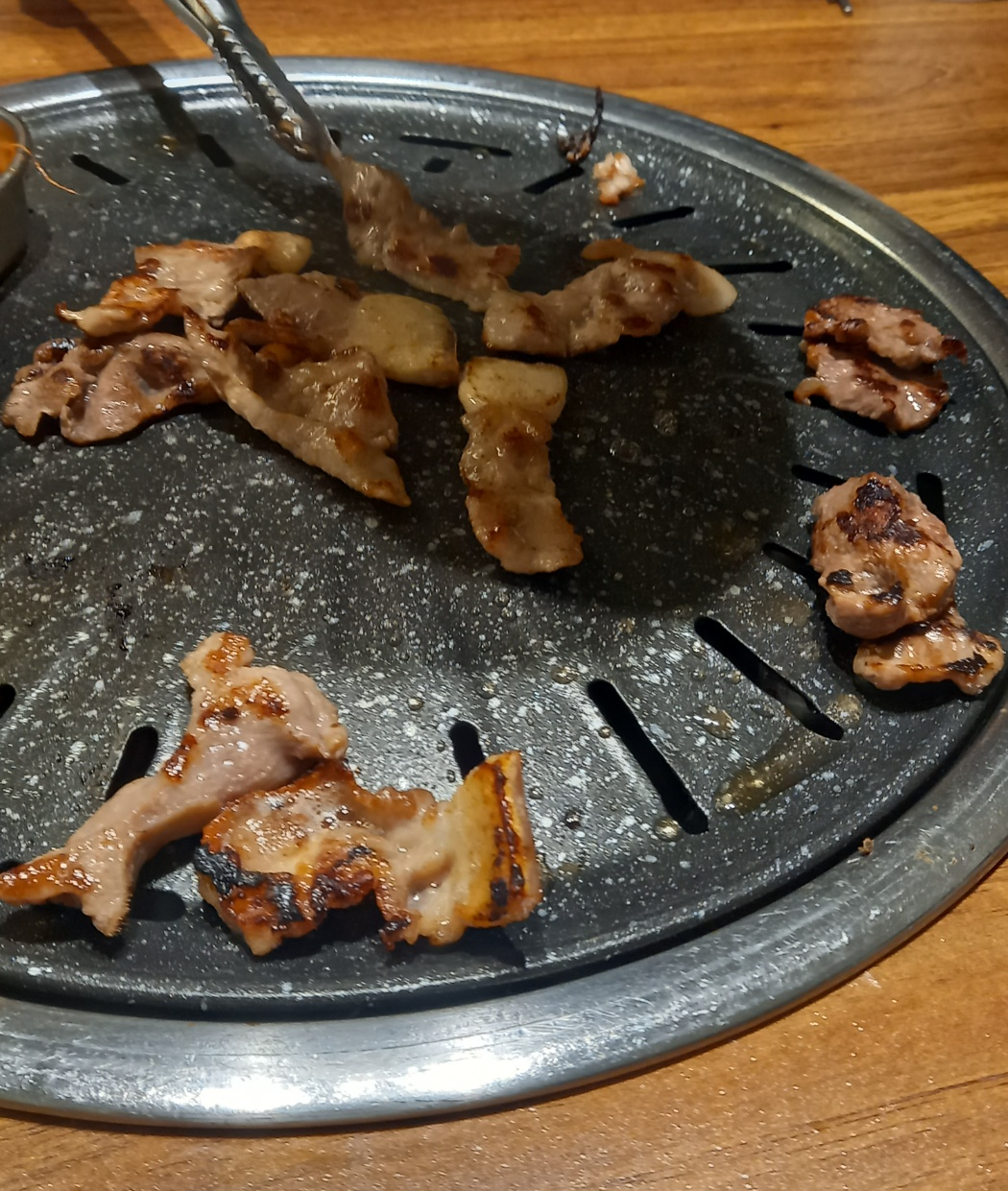 다익은 고기는 불판끝쪽으로 빼줍니다.