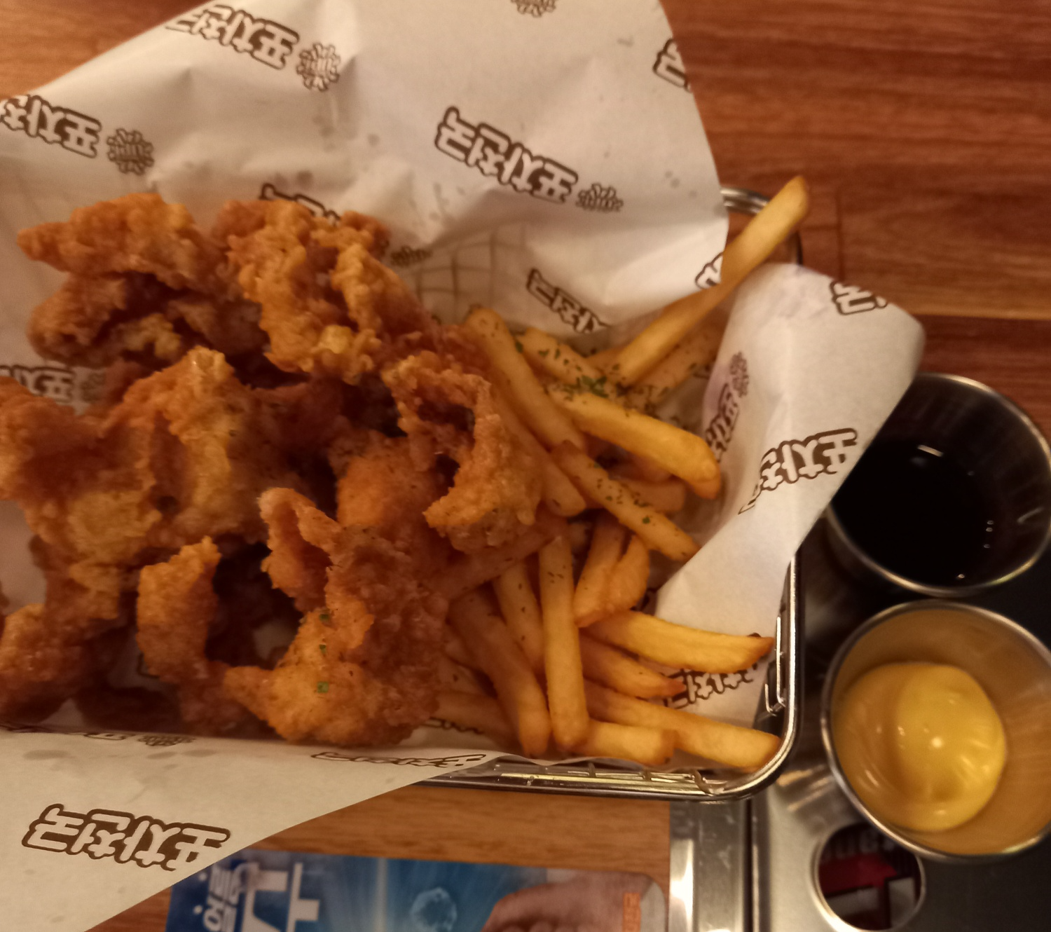 그리고 먼저나온 과일요거트를 먹고 있다보니 주문한 닭껍질튀김이 나왔습니다.