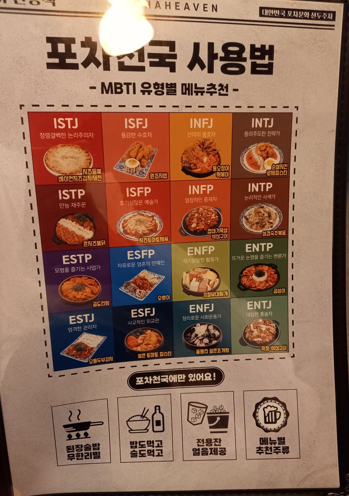 남포동 포차천국 메뉴판입니다.