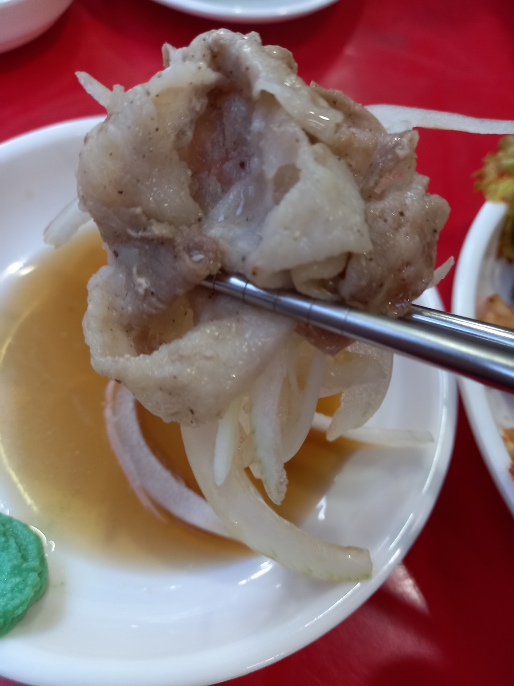 기다릴필요없이 바로 대패삼겹살을 양파절이와 함께 먹어봅니다.