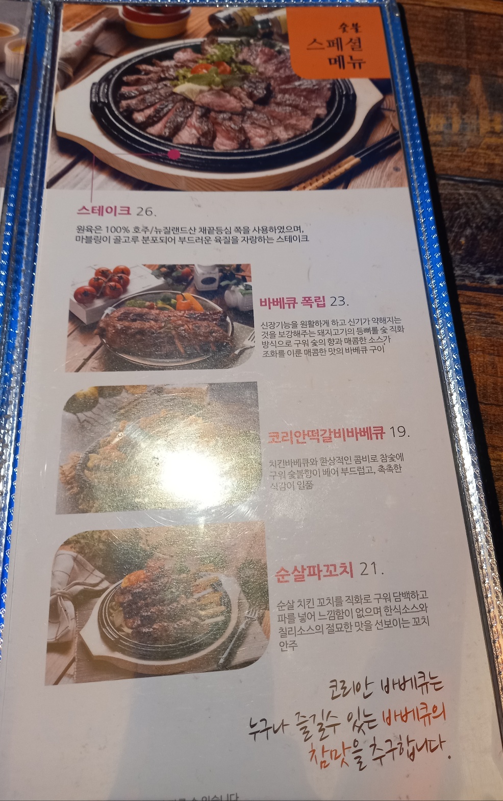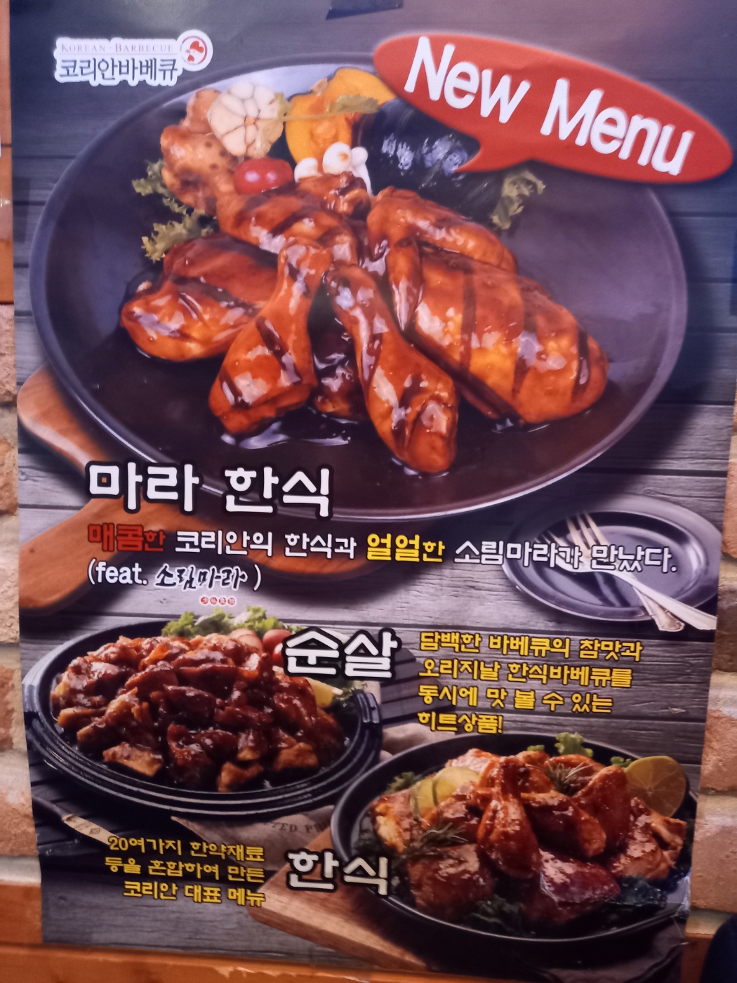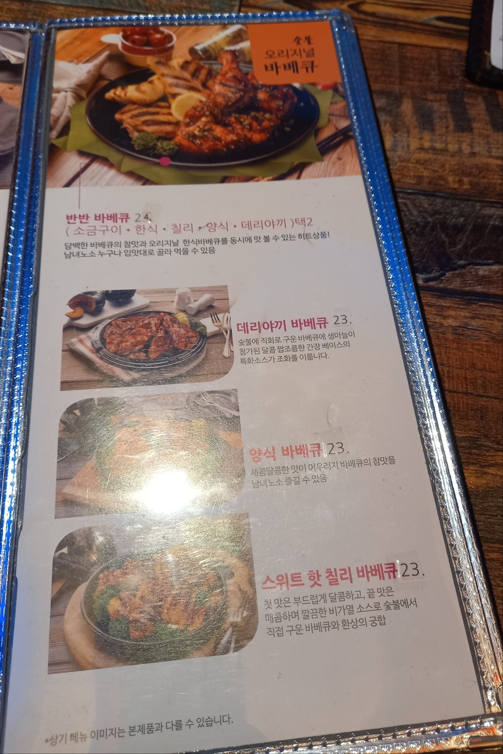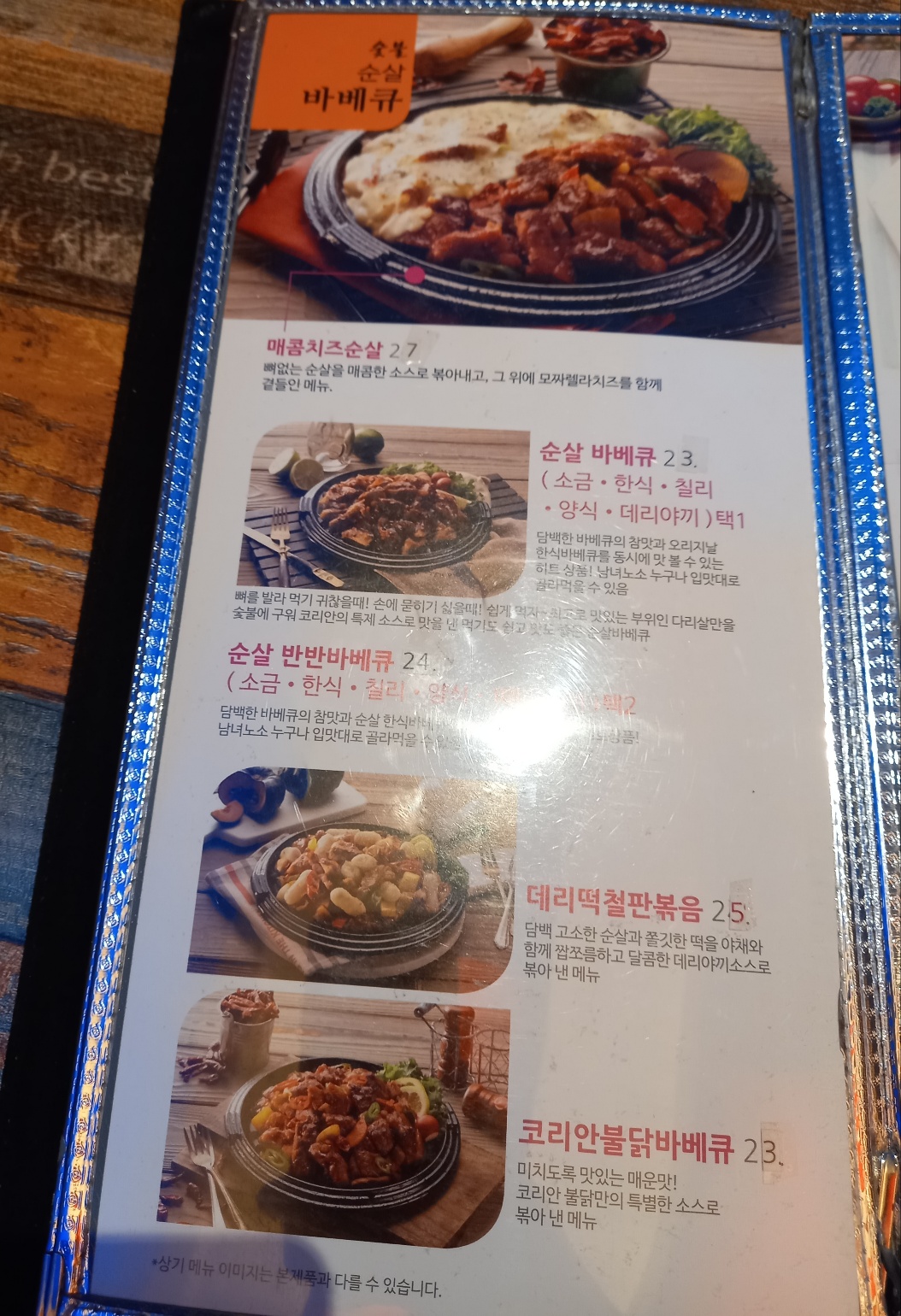 보통 저는 코리안바베큐에 방문하면 숯불바베큐치킨만 주문하여서 메뉴판을 제대로 보지는않았는데