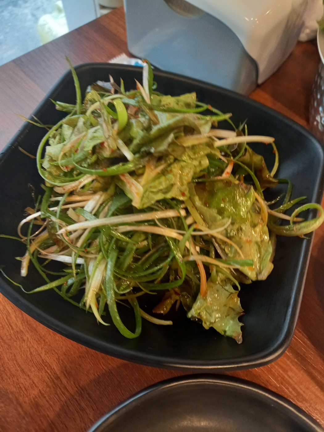 밑반찬중에 나오는 고추절임과 함께먹으니 맛있었습니다.