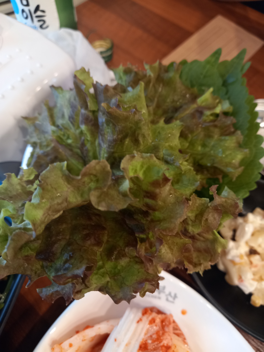 상추 양파 마늘에 콩나물무침까지 함께 먹으니