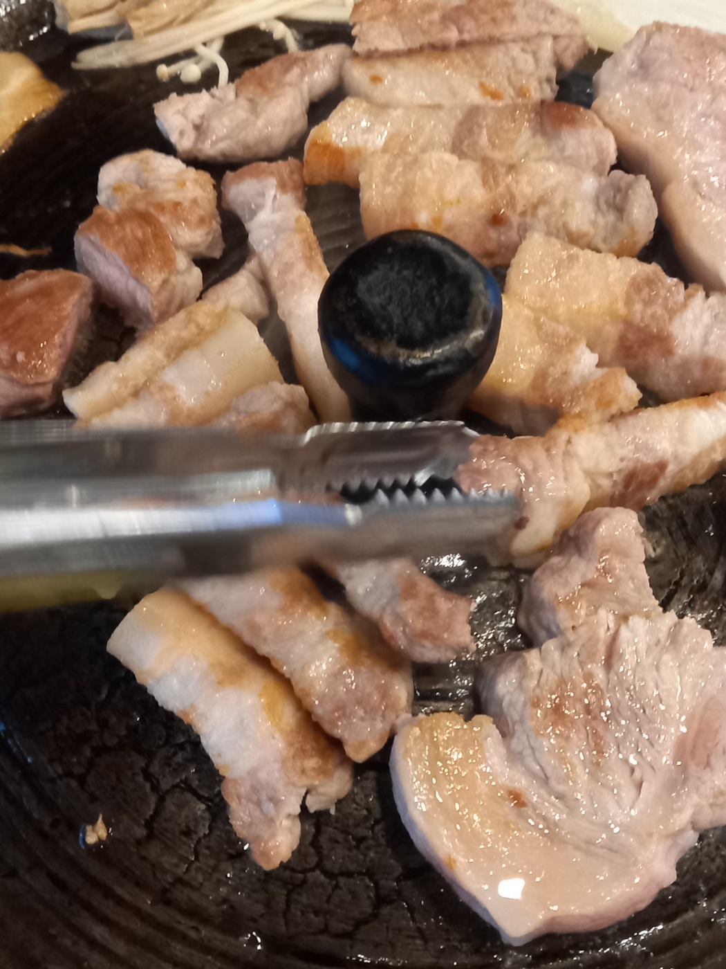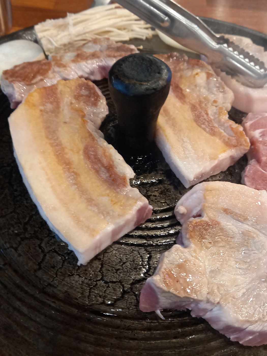 노릇노릇 구워지는 생삼겹과 생목살의 냄새가 정말 좋았습니다.