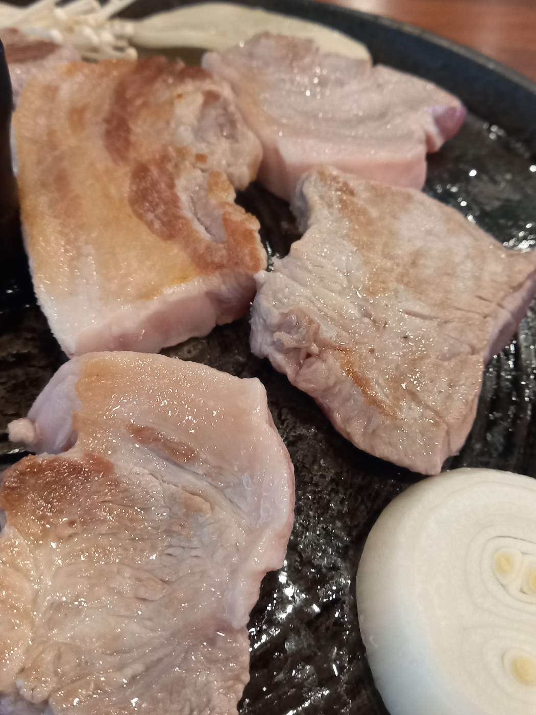 맛있는 생삼겹과 더불어 담백한맛이 일품인 두툼한 생목살을 먹습니다.