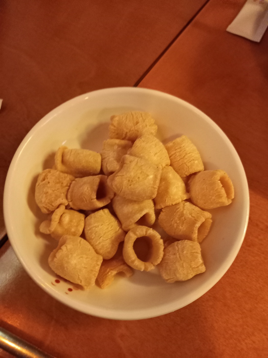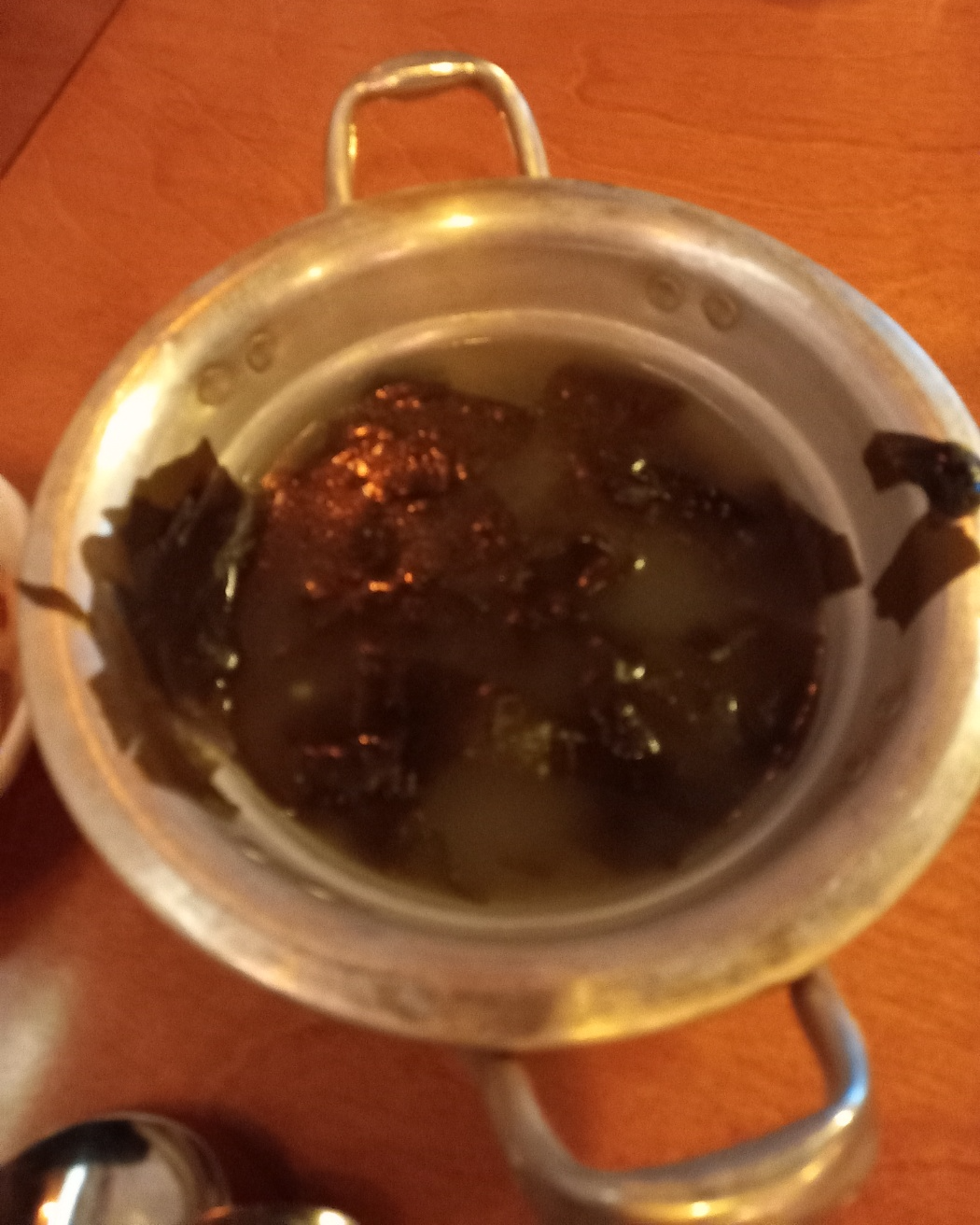 주문을하고 밑반찬으로 미역국과 호롱이과자가 나옵니다.