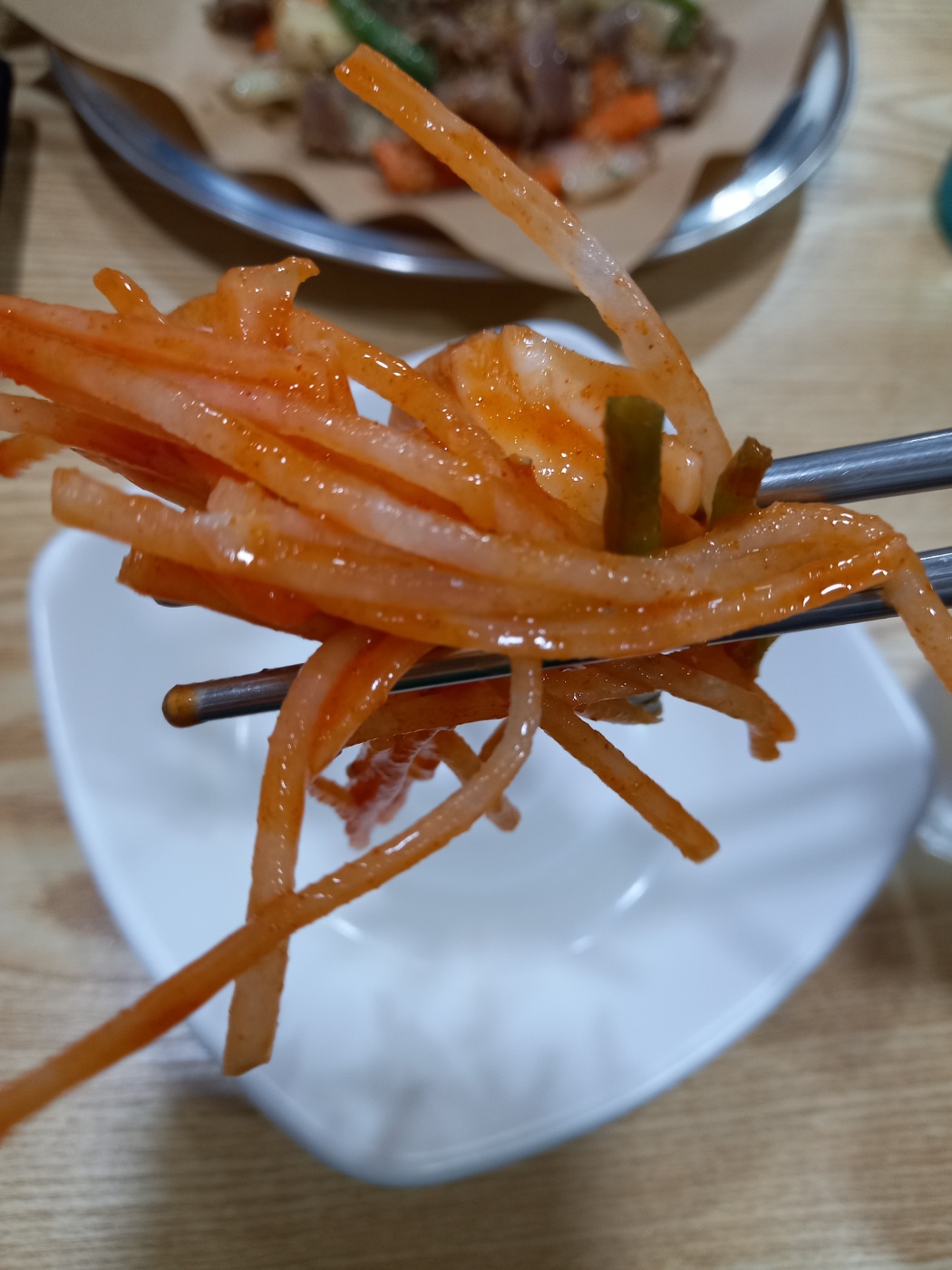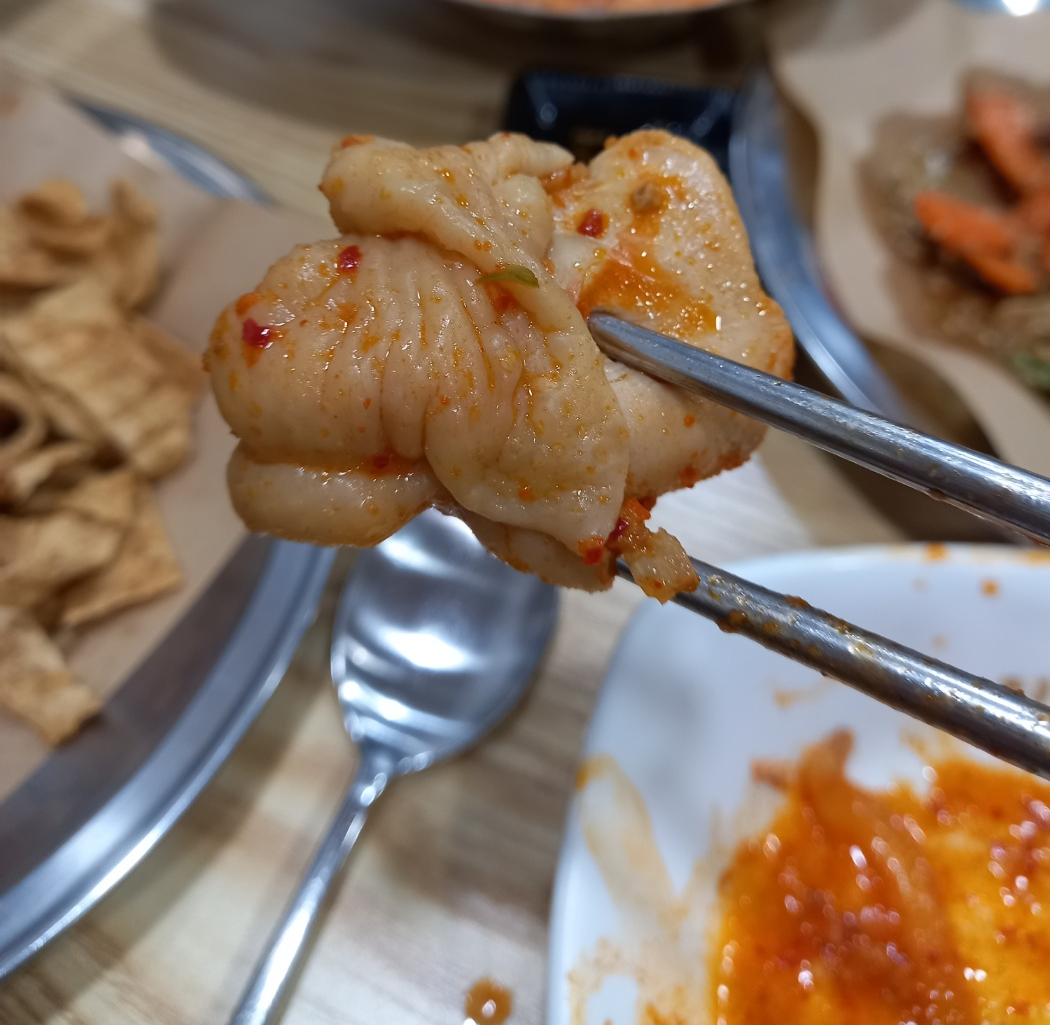 매콤하면서 아삭하고 오징어의 쫀득한 식감이 매우 좋았고