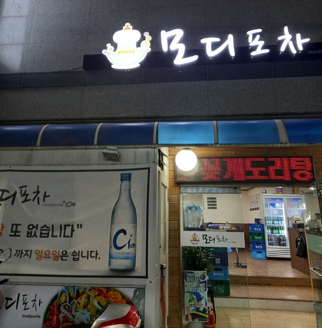 저녁에 남항시장골목에서 맛있게 먹을 수 있는 모디포차2호점.