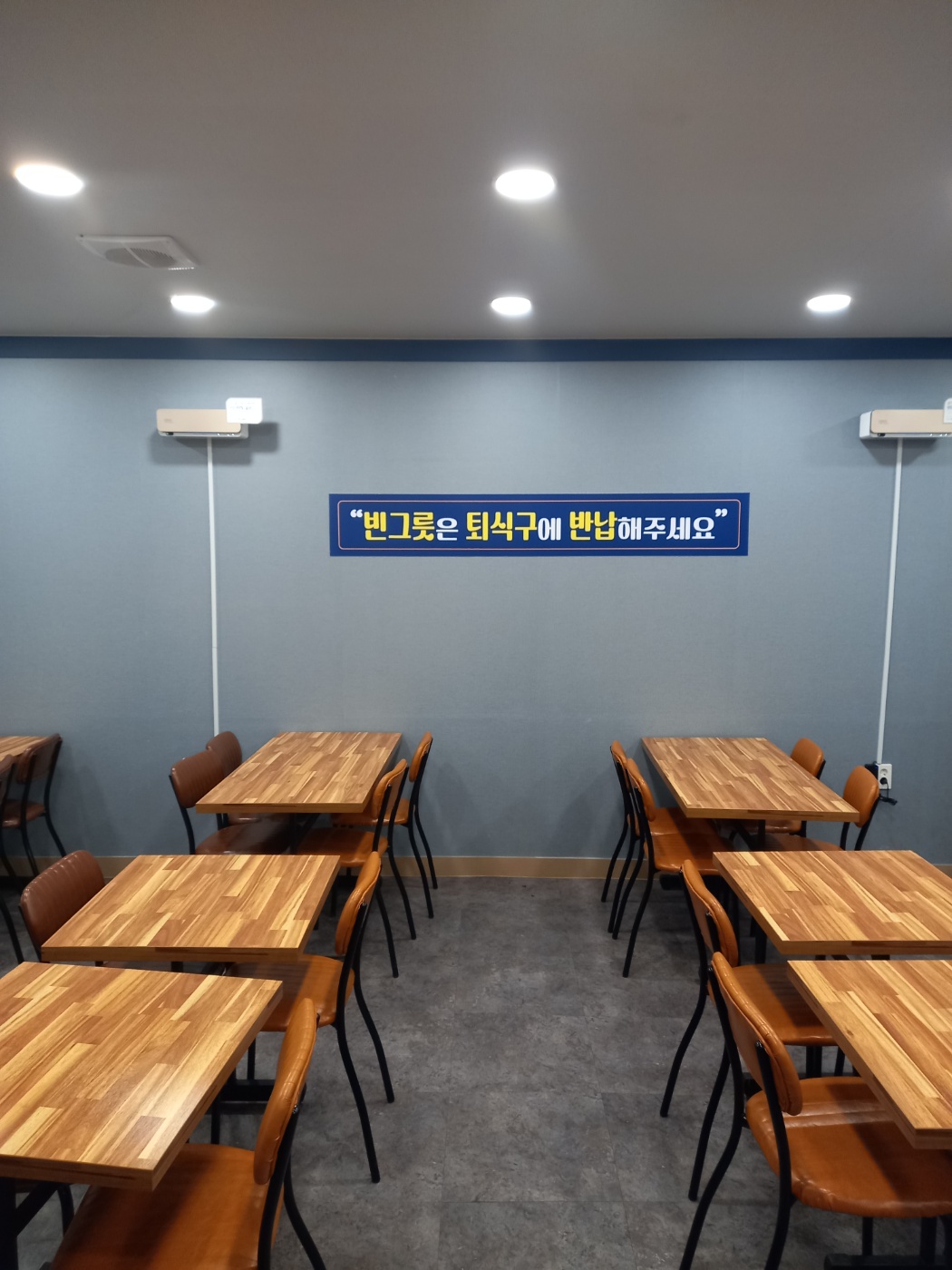 문구에 적혀있듯이 다 드신 빈그릇은 입구쪽으로 가는 방면에 퇴식구가있는데 거기에 반납해주시면됩니다.