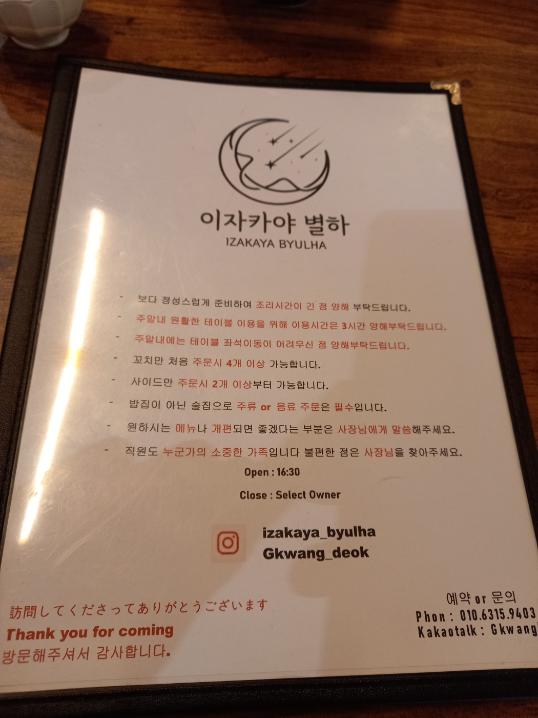 웬만한곳은 다 가본거같았는데 새로생긴 이자카야 별하가 보였습니다.