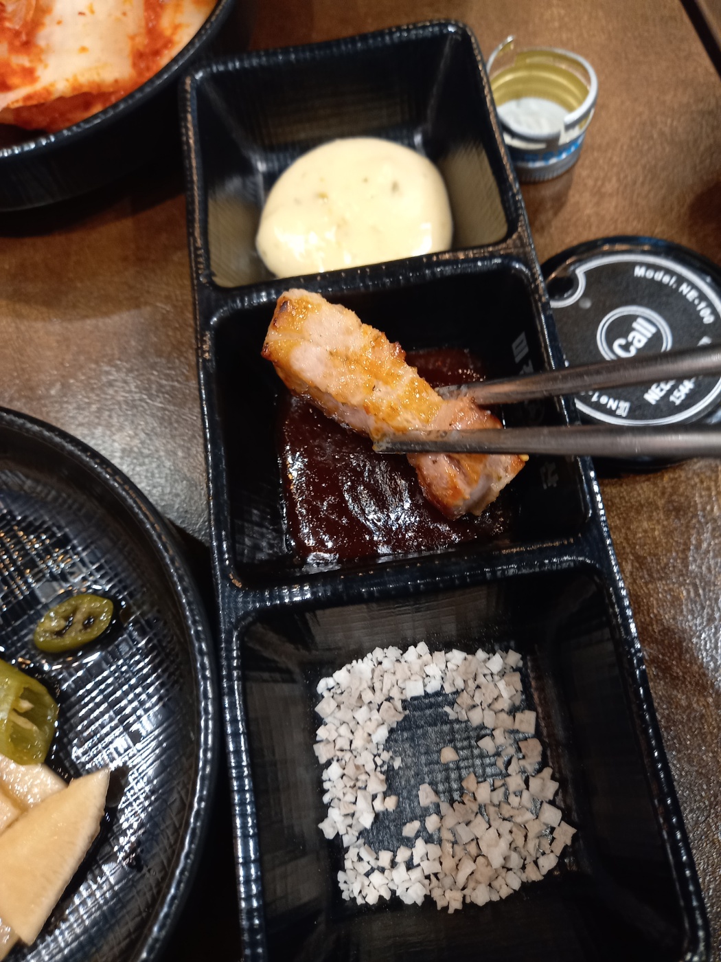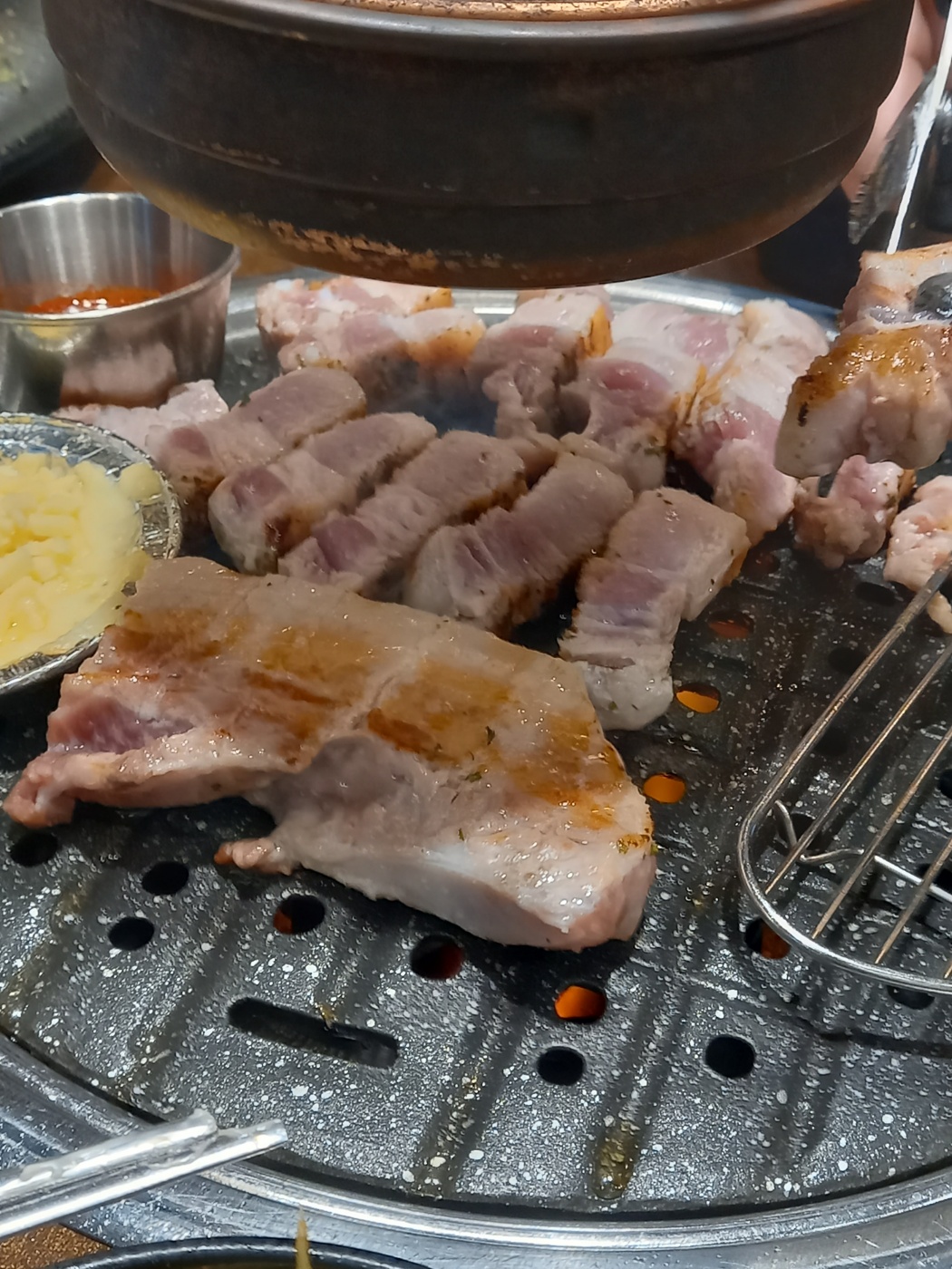 생삼겹살이다보니 구워질때 육즙이많고 적당한 비계가 매우 괜찮았습니다.
