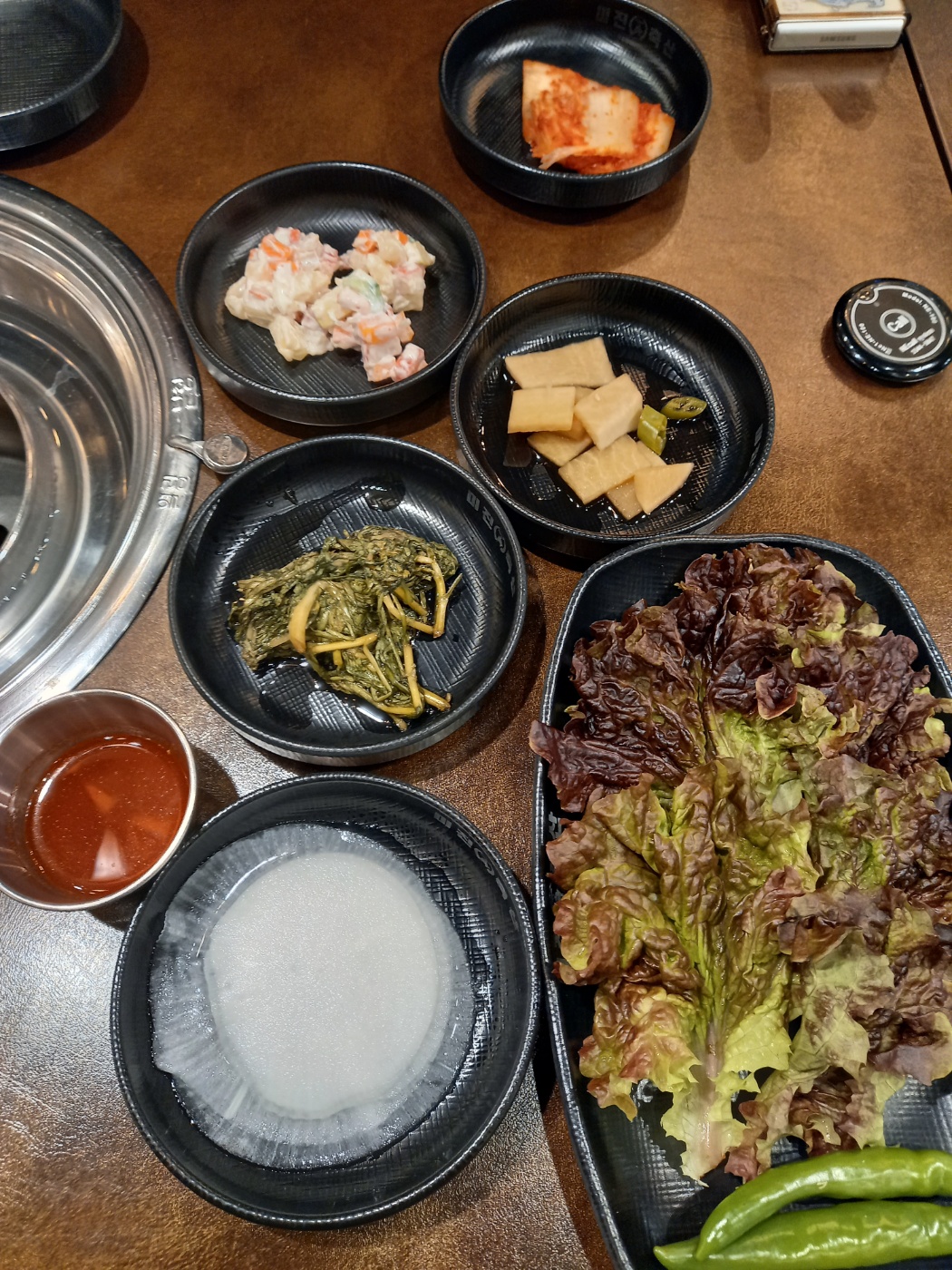 특별한 밑반찬들이 나오지는않고 고기집에서 나오는 대표적인 밑반찬들로 나옵니다.