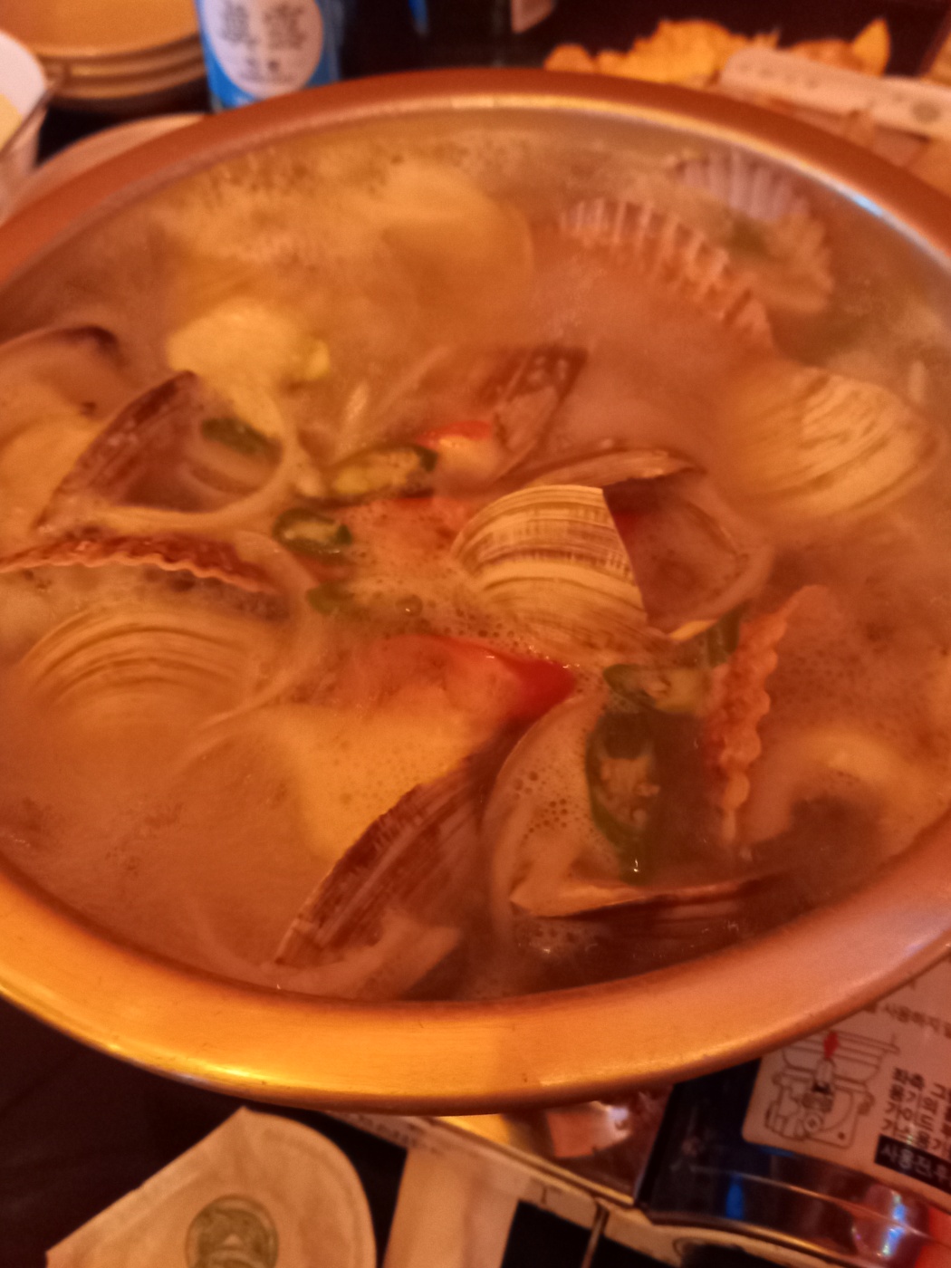 시원하고 칼칼한 조개탕 너무 맛있는게 술이 쫙쫙들어갑니다.