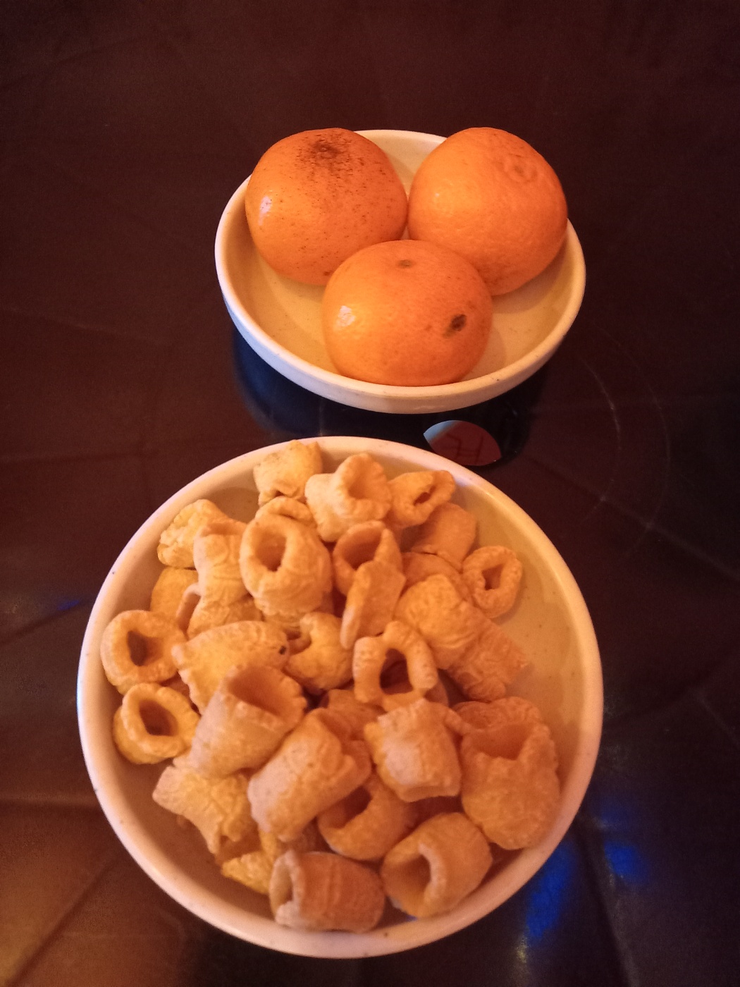 주문을하고 밑반찬으로 입가심하기좋은 바삭한과자와 달달한 귤을 주셨습니다.