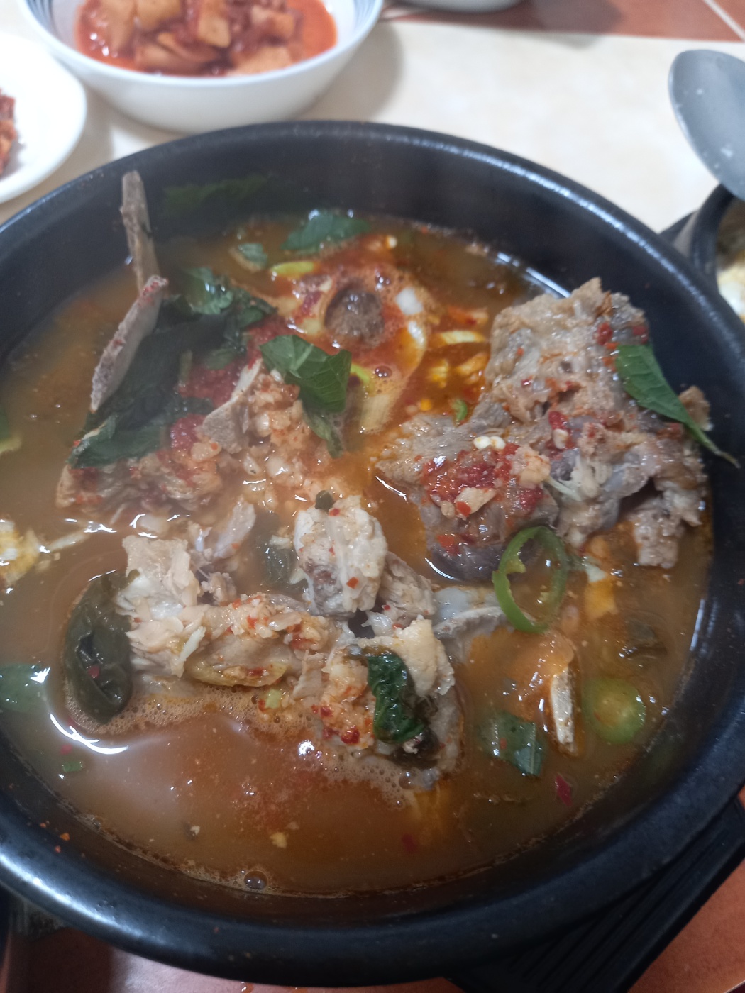 그렇게 맛있는 계란찜을 먹다보니 주문한 뼈해장국이 나왔습니다.