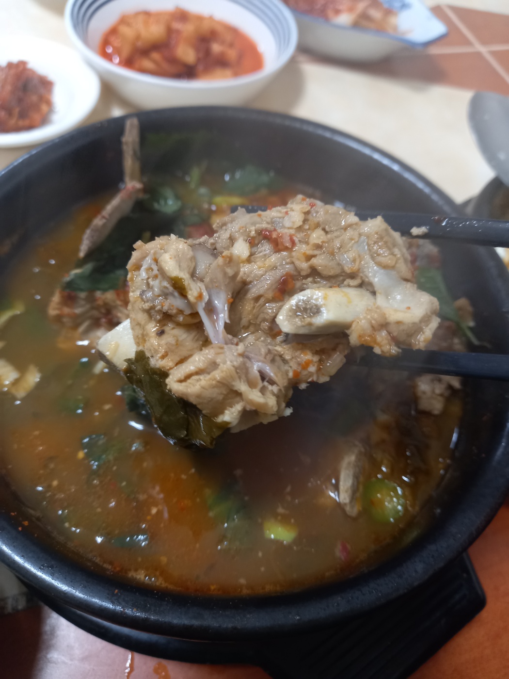 비주얼은 일반적이 뼈해장국집과 비슷하지만, 돼지 등뼈의 부위인지는 잘 모르겠네요.