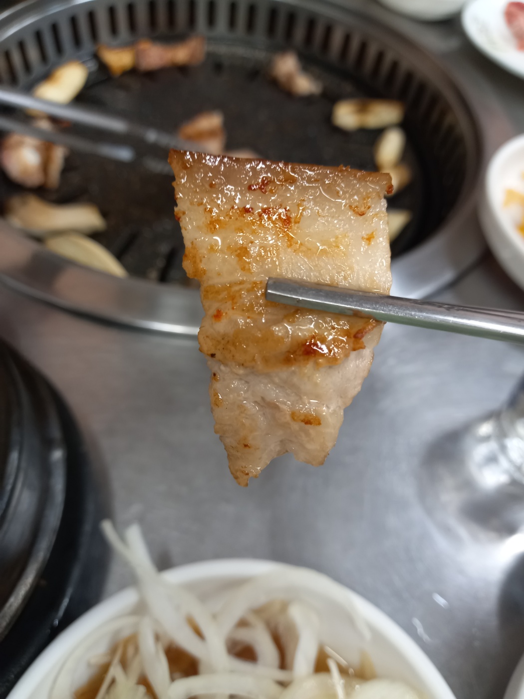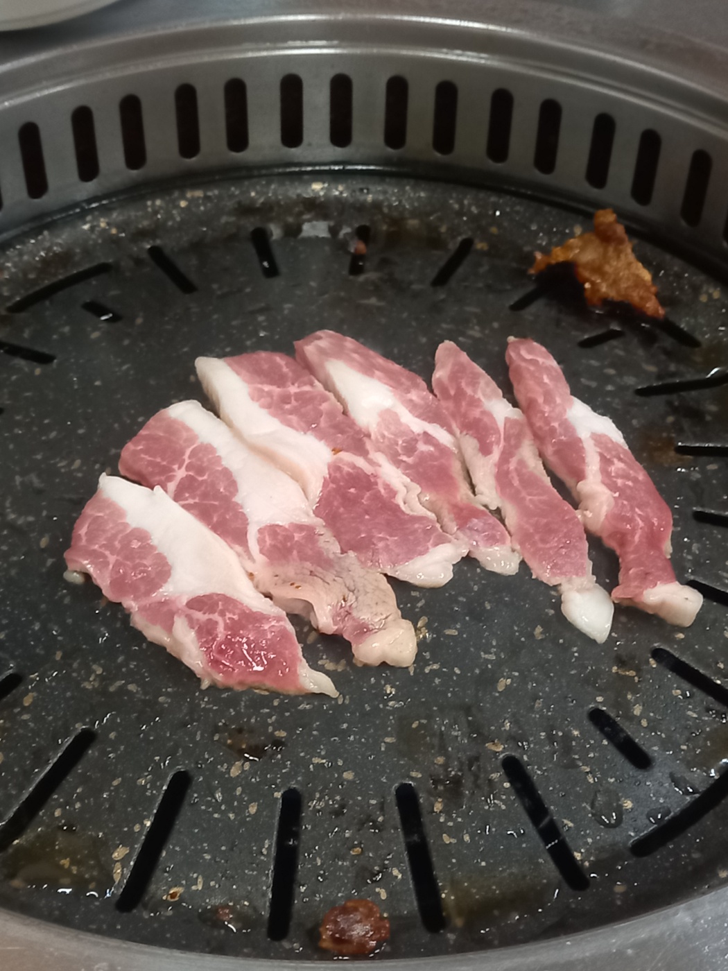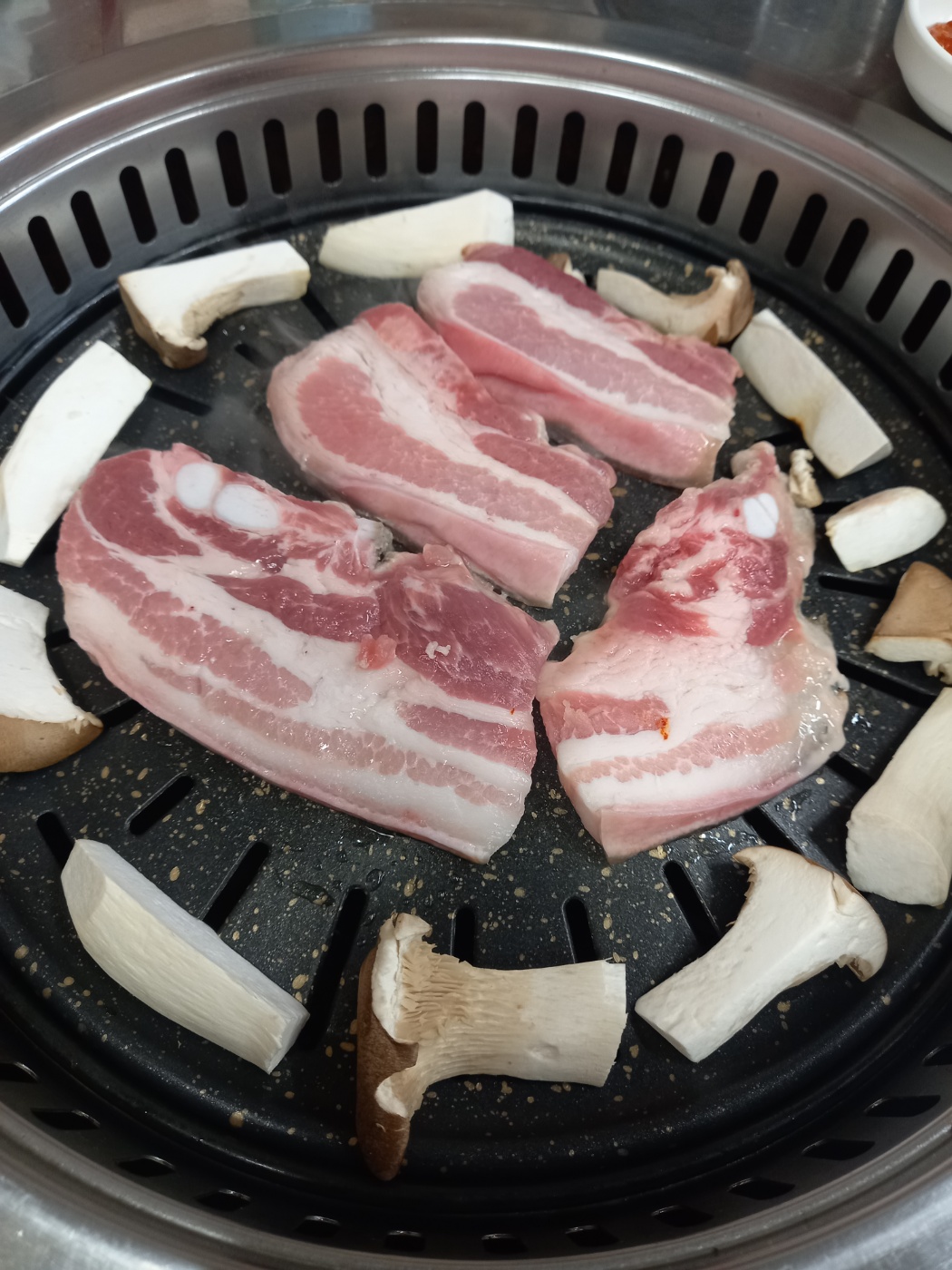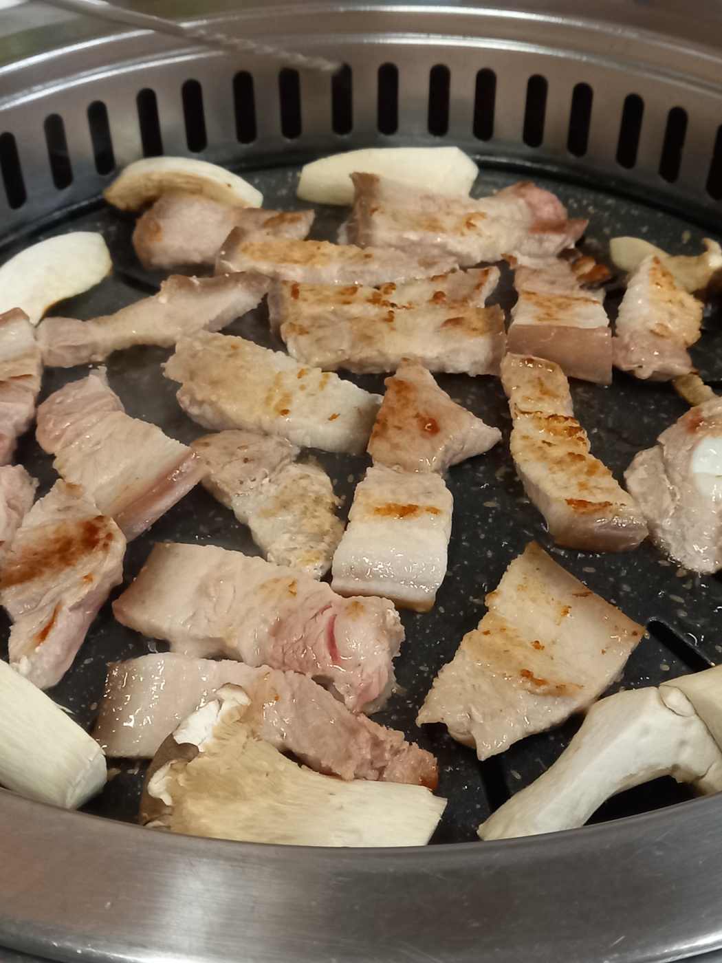 그렇게 어느정도 기다리다보니 생삼겹살이 맛있게 다 구워졌습니다.