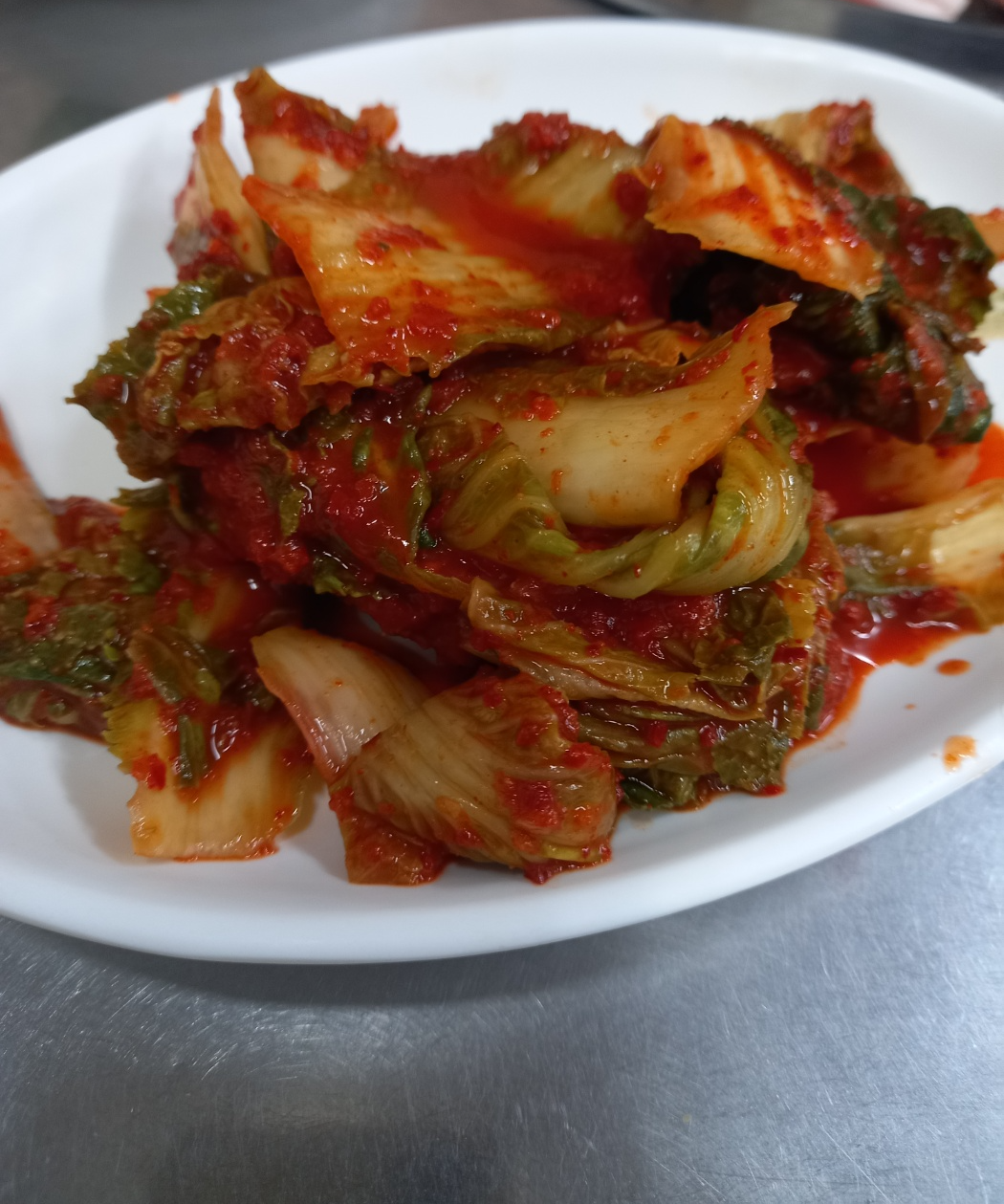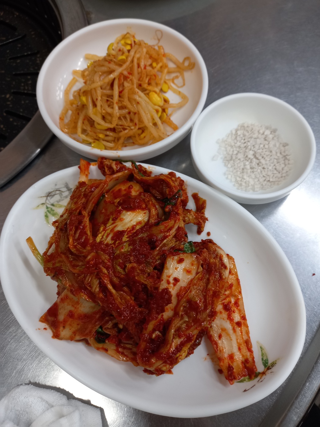 콩나물 배추김치 마늘 고추가 먼저 나오고