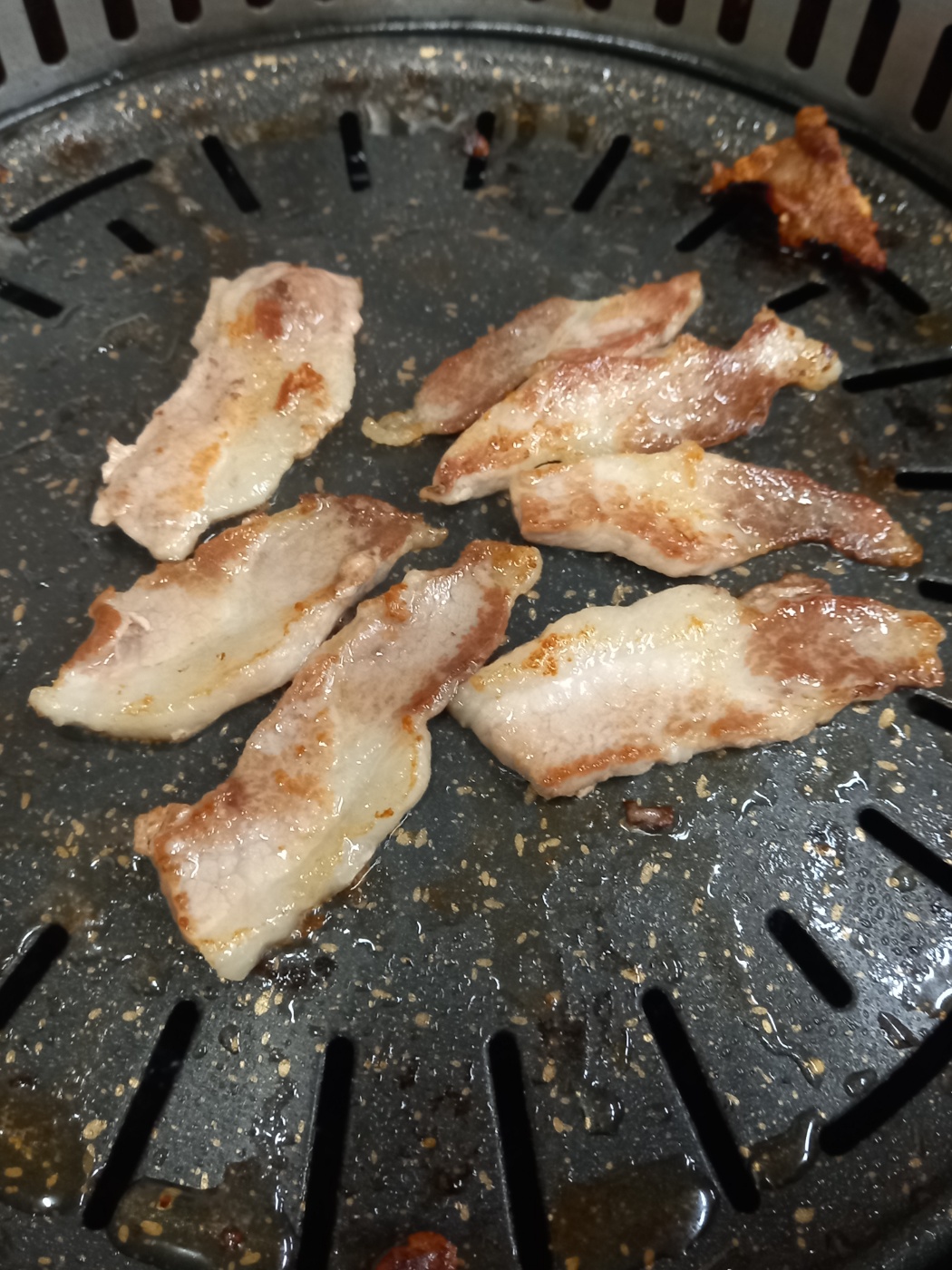 익을수록 더욱 맛있는 삼겹살의 비주얼이되네요.