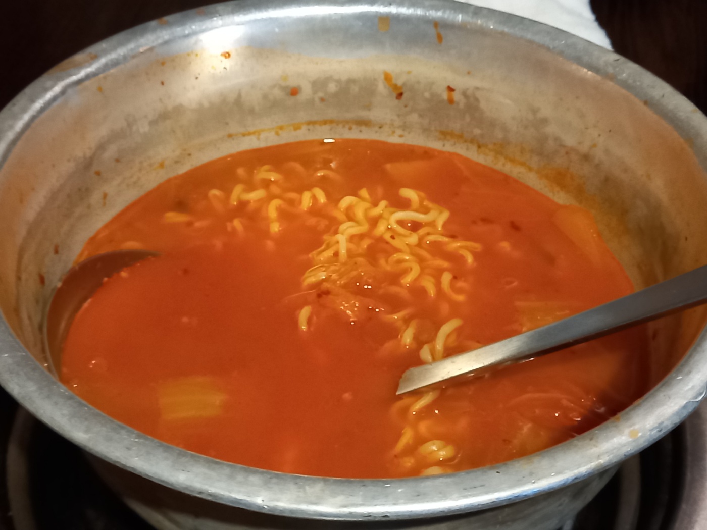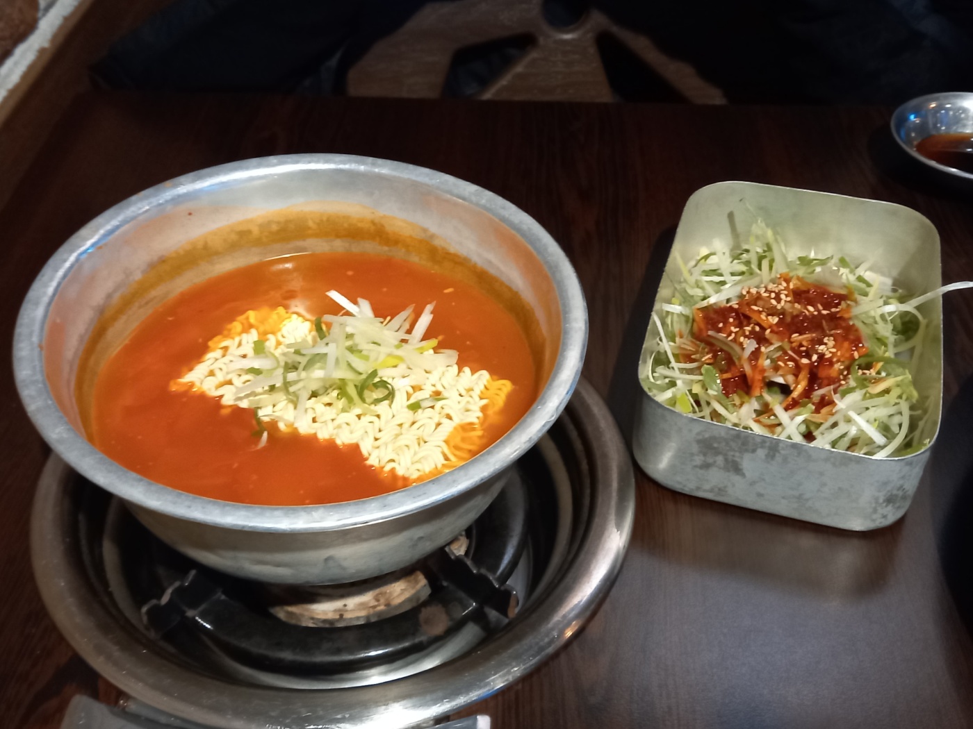 바로, 김치찌개 라면사리가 나오고