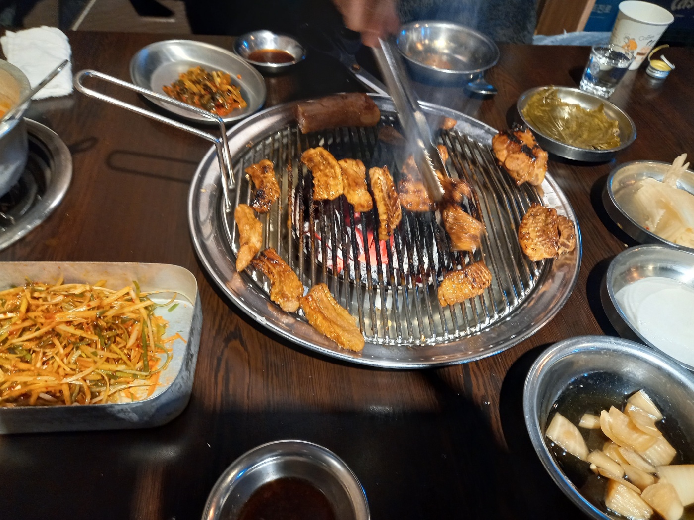 고기를 먹음짓스럽게 구워줬습니다.