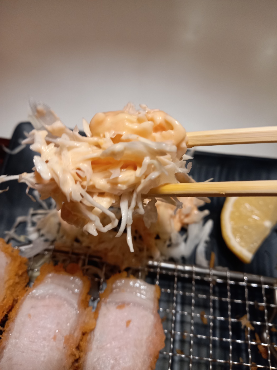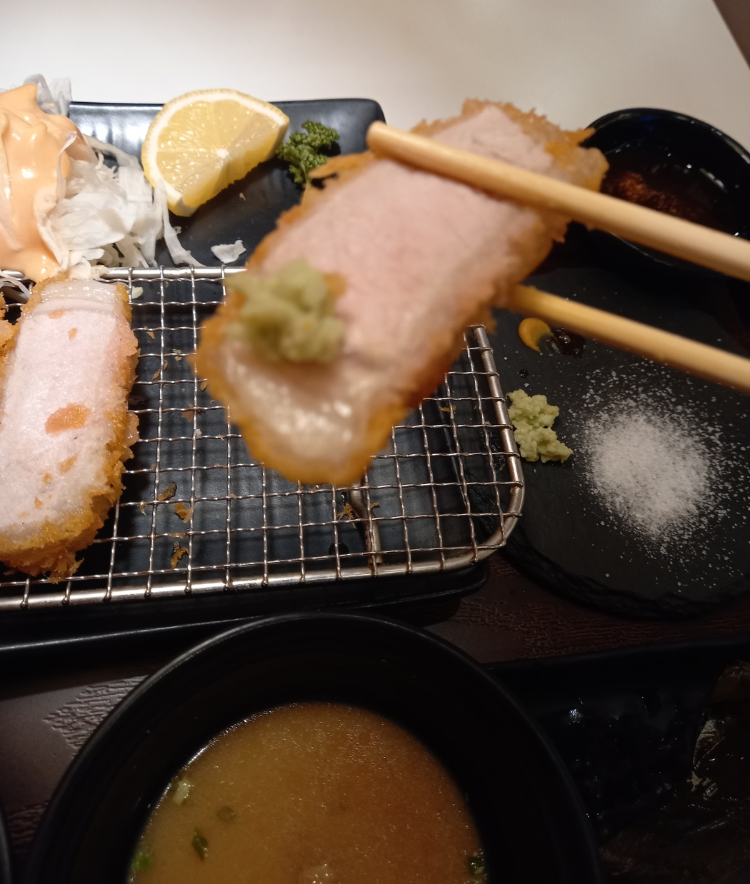 와사비의 맵싹한맛이 로스카츠와 정말 잘 어울립니다.