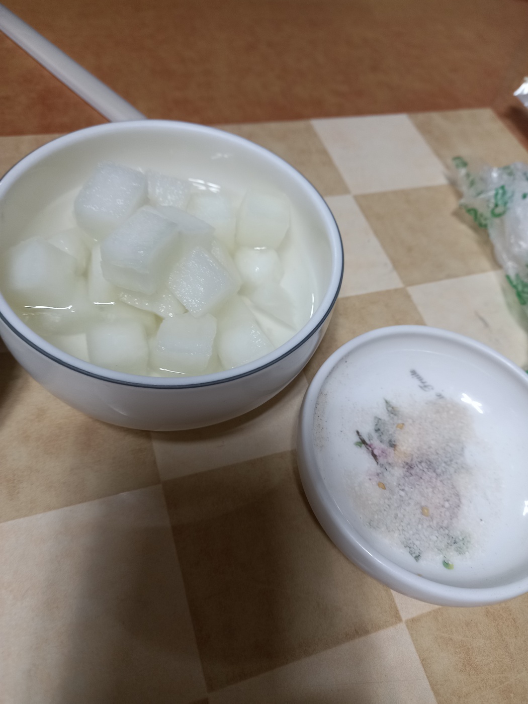일단 치킨집이라서 밑반찬은 양배추샐러드와 무가 나왔습니다.