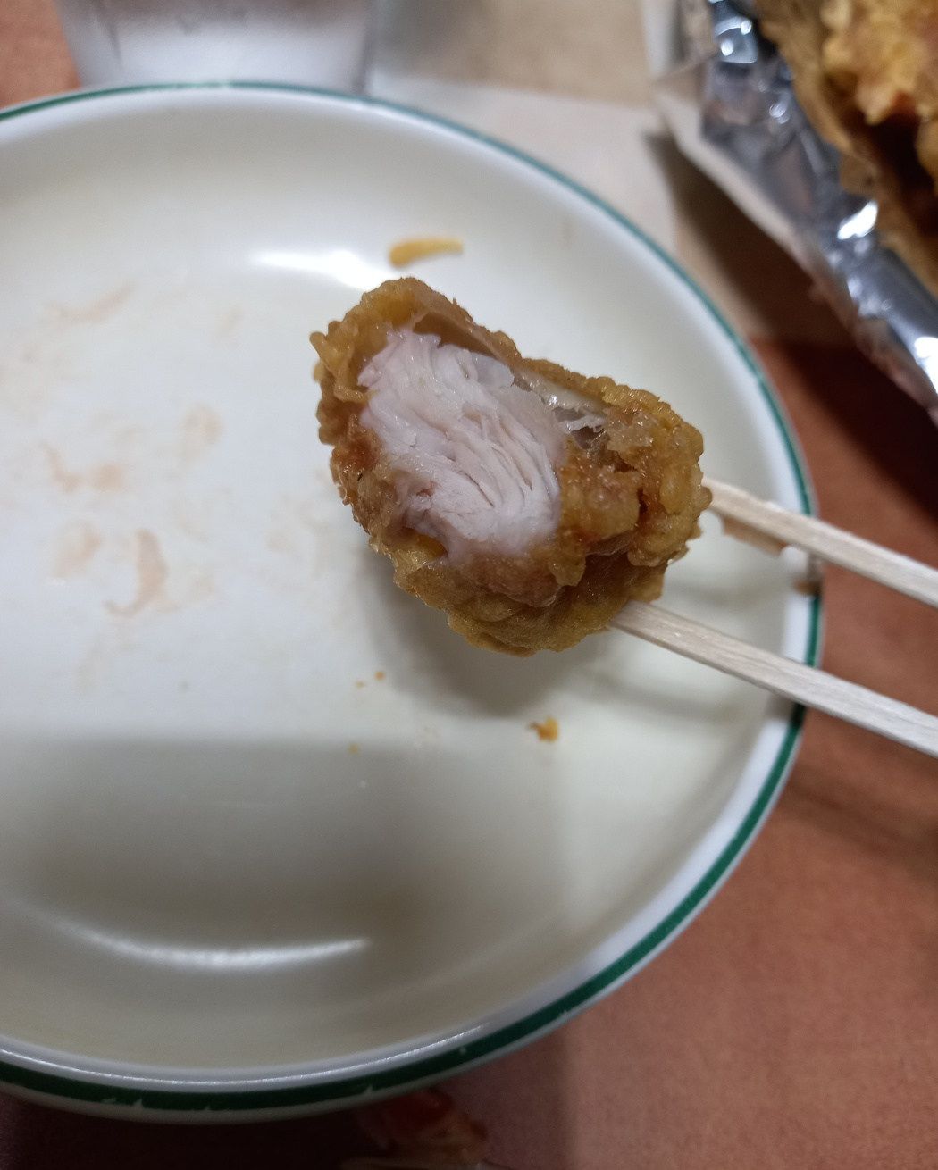 튀김옷이 두껍지가않은 옛날치킨과 비슷한데