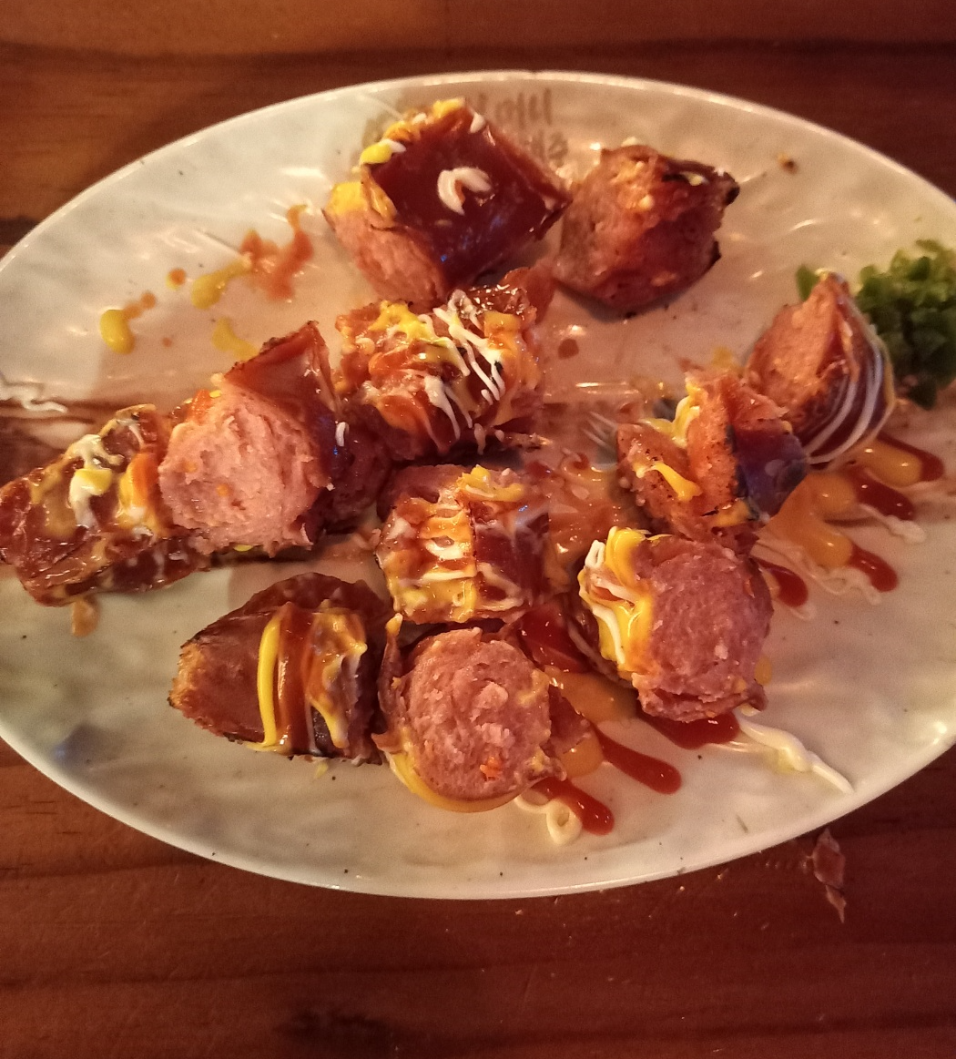 1차를 먹고 와서 입가심으로 먹기 좋은 수제소시지와 프레쉬한 살얼음파인애플을 주문하였습니다.