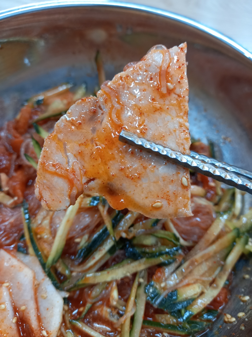 맛있게 비벼서 고기부터 먹었습니다.