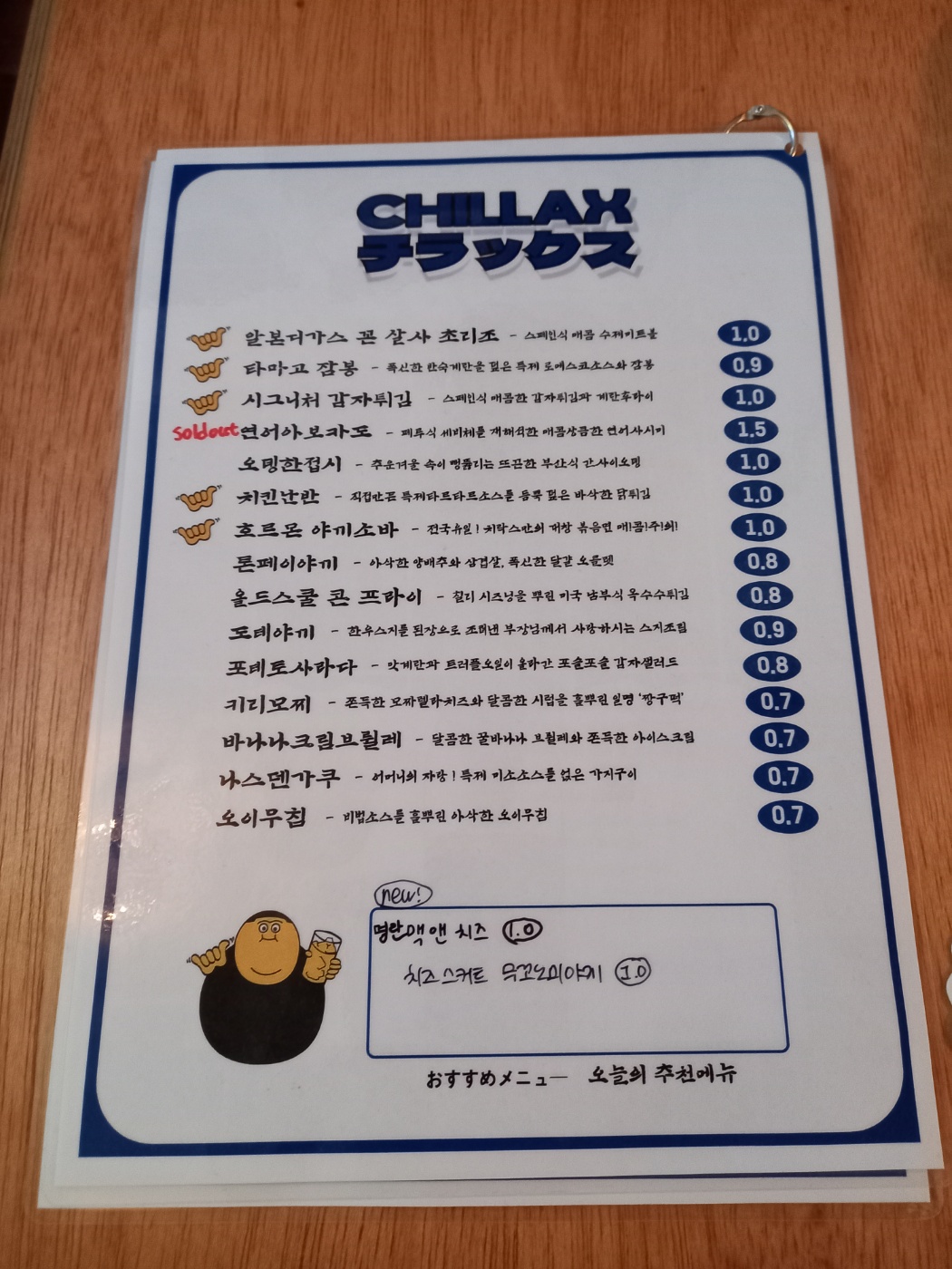 가게 이름이 치락스인데 단어의 뜻이 좋았어요.