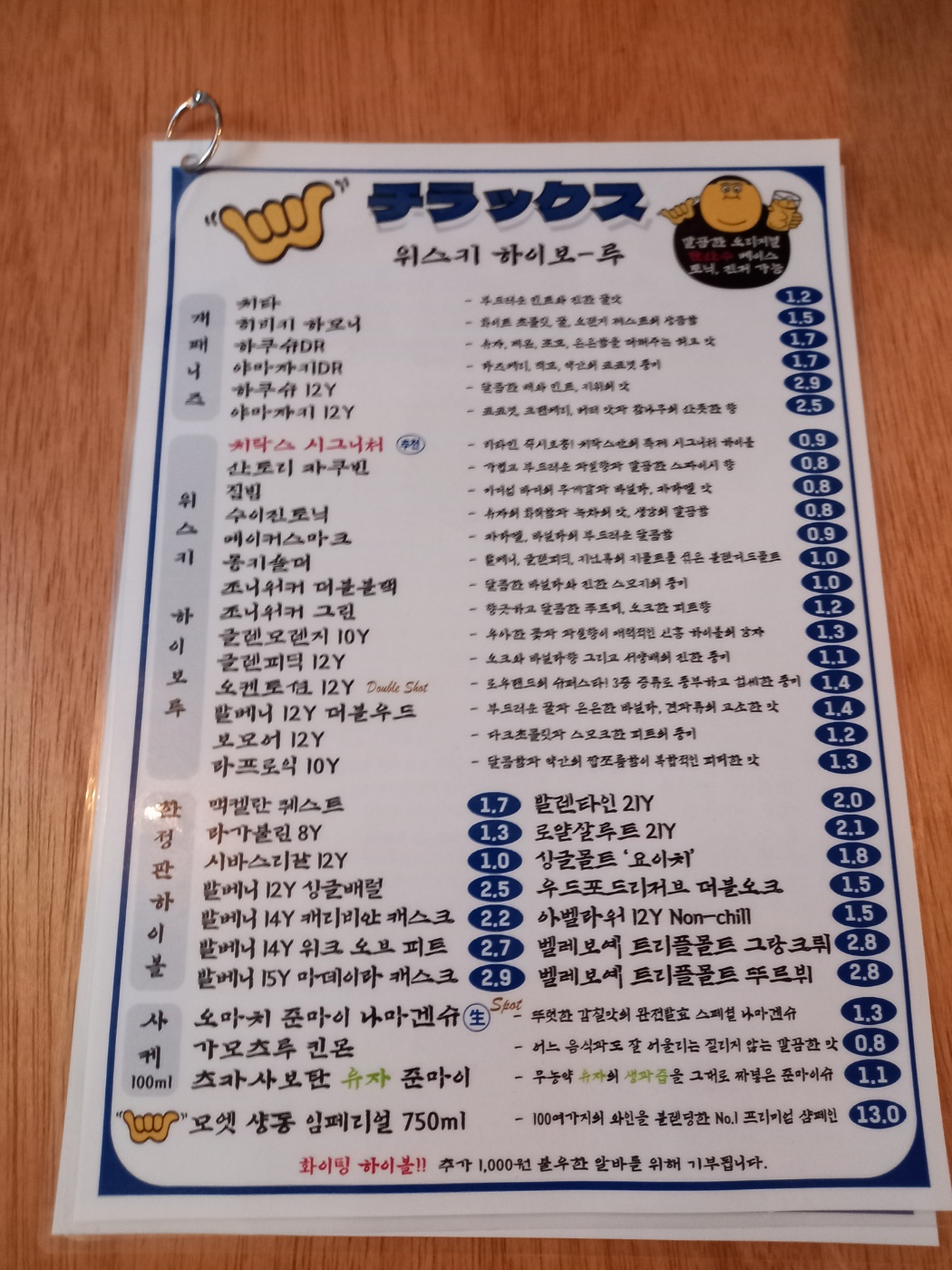 일단 메뉴판을 봤을때 안주의 가격이 정말 저렴하더라고요.