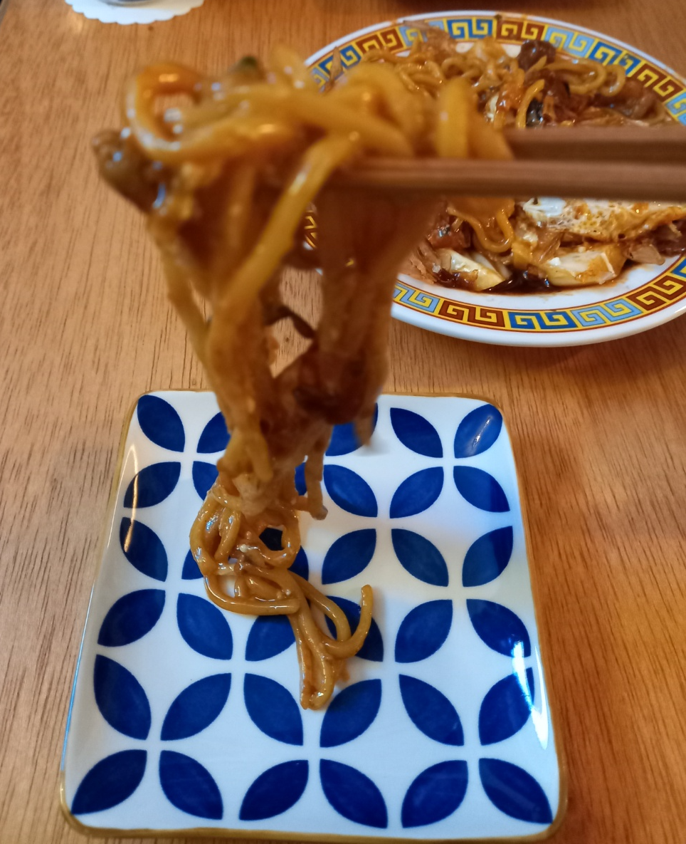 야끼소바의 소스가 하이볼과 정말 잘 어울리는 맛입니다.