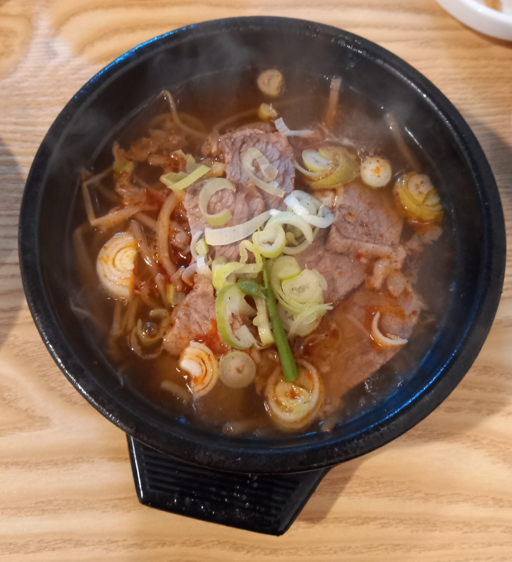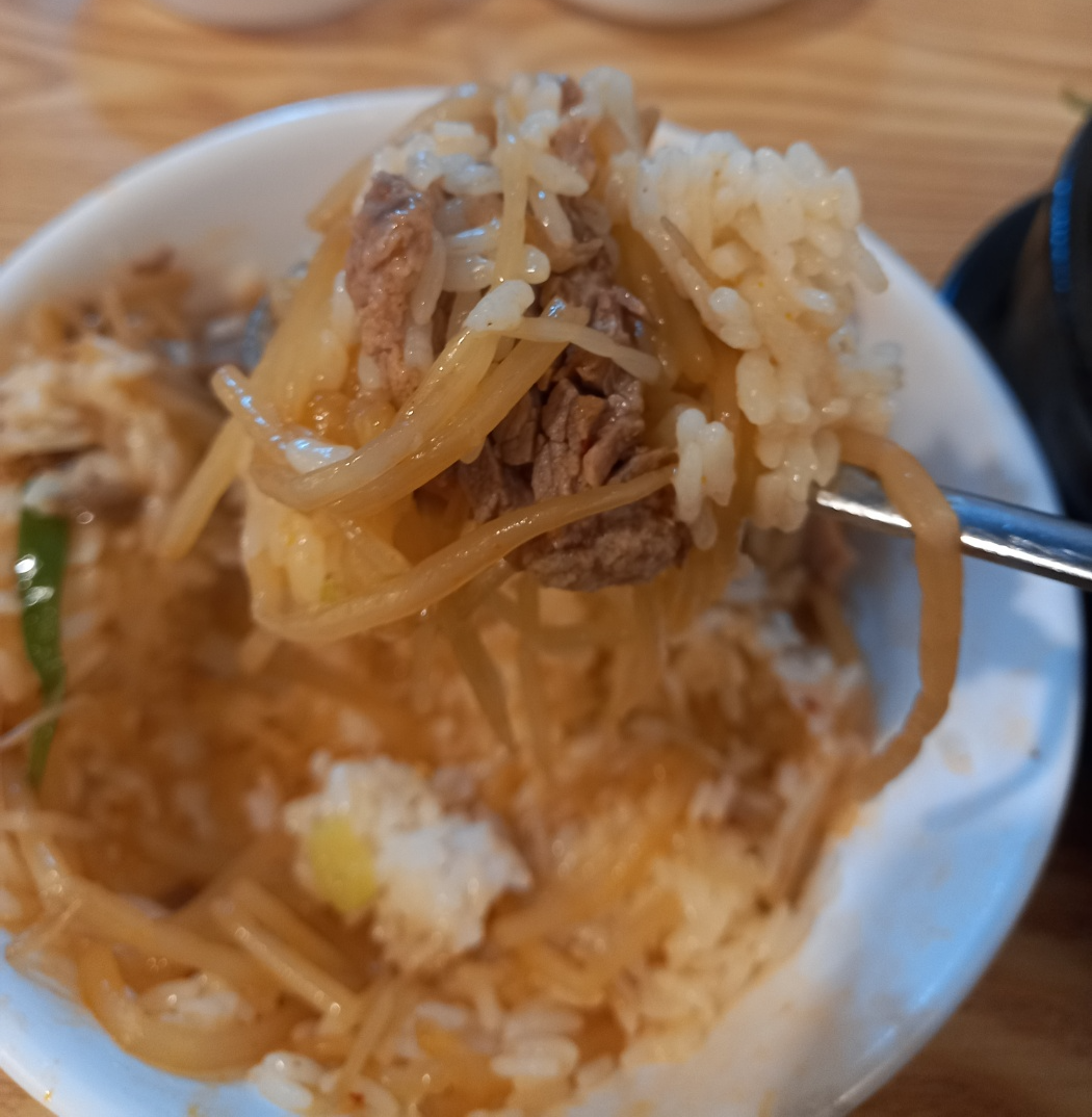 살짝 맑은 소고기국밥에 고추가루를 넣은 느낌.