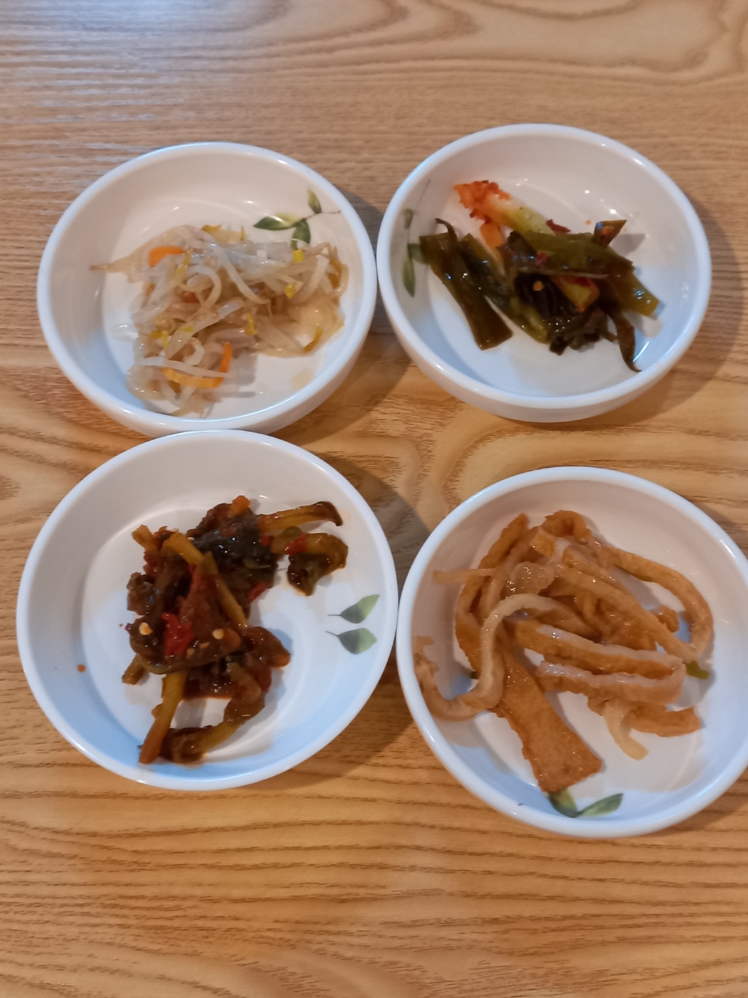 숙주나물볶음 파김치 어묵볶음등이 나오네요.