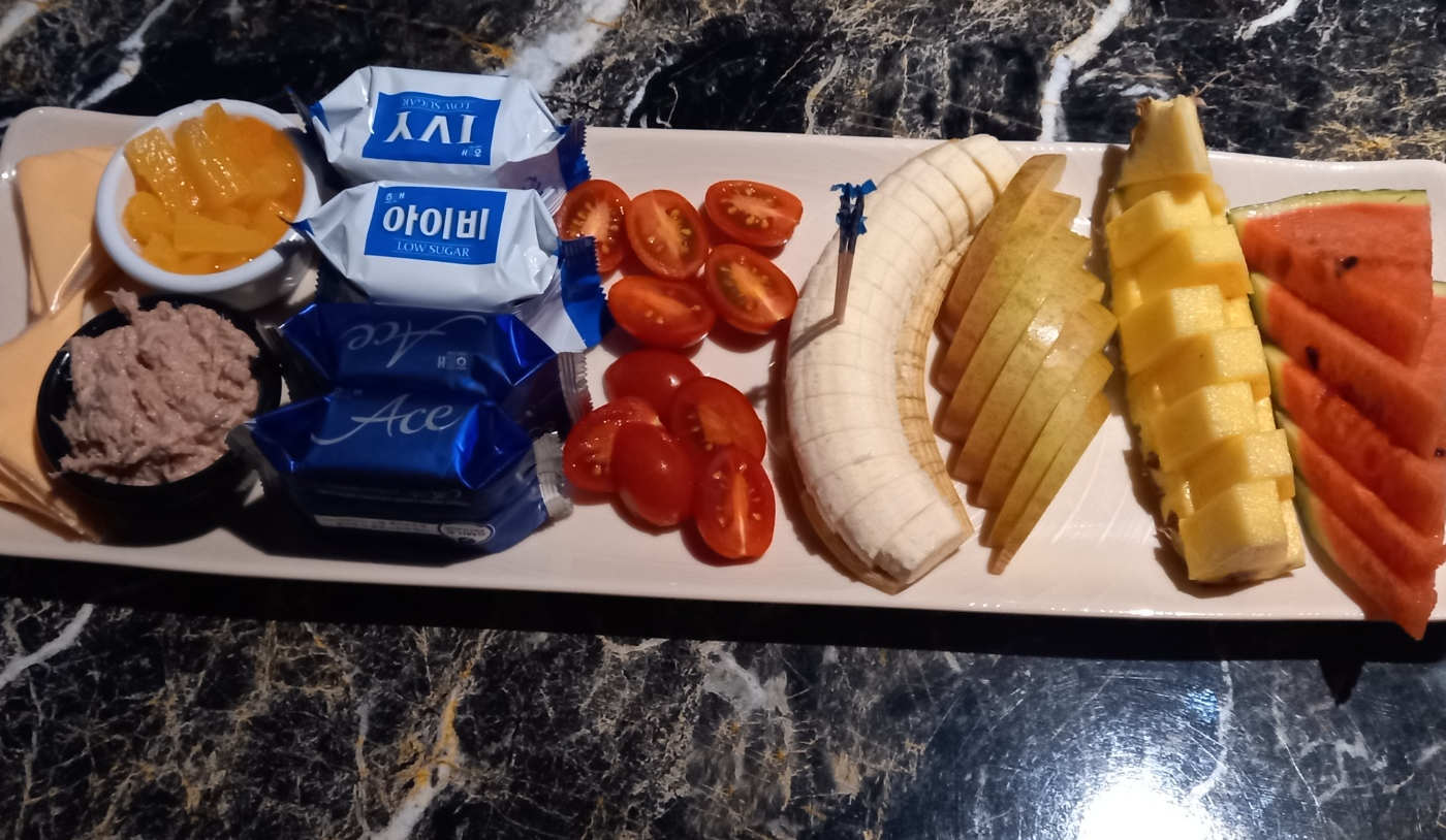 여러가지 과일들을 먹으면서 까나페를 정말 맛있게 먹었습니다.