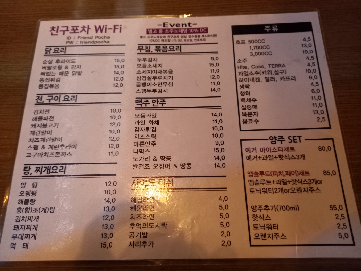 친구포차는 다시한번 저렴하다고 생각이 들었습니다.